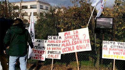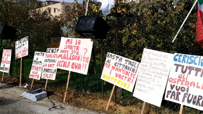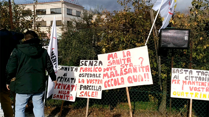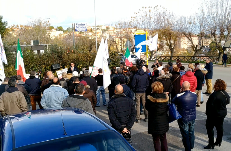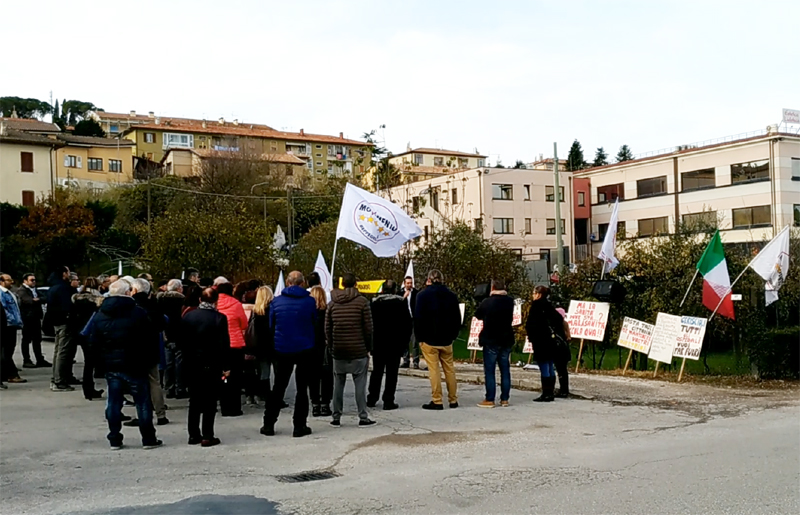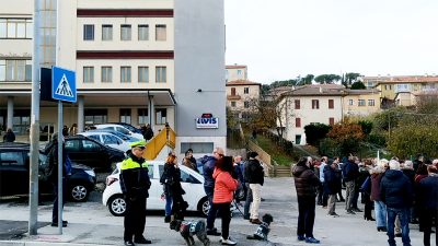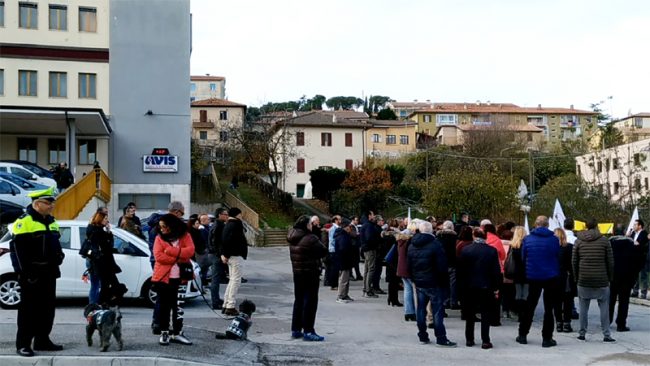 Un centinaio di manifestanti, stamattina alle 10.30, ha protestato con il sindaco, il vice sindaco, gli assessori e i consiglieri comunali di maggioranza di Castelfidardo, davanti all’ex ospedale cittadino contro la chiusura del Cup e lo smantellamento dei servizi essenziali. Alla manifestazione organizzata dal M5S hanno preso parte anche i consiglieri regionali come il capogruppo Gianni Maggi e l’on. Andrea Cecconi, parlamentare marchigiano pentastellato. Il sindaco Roberto Ascani ha espresso preoccupazione per i disservizi che da gennaio ad oggi sono stati registrati al Cup, alla Cassa del Poliambulatorio e all’Ufficio Anagrafe, spesso chiusi per assenza del personale “destinato ai Poliambulatori di Osimo. Il servizio di fisioterapia – ha ricordato il primo cittadino – ha chiuso le prenotazioni per terapie programmate, garantendo solamente le urgenze, sempre a causa di carenza di personale. Il servizio Umee ha sospeso le valutazioni Dsa, disturbo specifico dell’apprendimento, perché la logopedista è assente da due anni e non è stata sostituita e 40 famiglie di Castelfidardo attendono una risposta e nel frattempo sono costrette ad andare presso gli ambulatori privati sostenendo costi esorbitanti”. Ascani ha rimarcato inoltre l’assenza di un portiere, “figura fondamentale in caso di emergenza perché deve attivare i soccorsi in caso di emergenze come un incendio o l’ascensore bloccato. Questi disservizi sono da tempo stati illustrati al presidente della Regione Ceriscioli che aveva garantito impegno per risolverli. A distanza di mesi la situazione è rimasta invariata”.