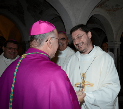 Papa Francesco l’ha nominato vescovo della diocesi di Gubbio lo scorso 29 settembre ed oggi alle 16, mons. Luciano Paolucci Bedini, del clero dell’arcidiocesi metropolitana di Ancona-Osino, finora rettore del Pontificio seminario regionale “Pio XI” di Ancona, con una solenne cerimonia nella cattedrale eugubina diventerà il sessantesimo successore di Sant’Ubaldo, patrono di Gubbio, e sarà anche il vescovo più giovane d’Italia. A consacrarlo sarà il cardinale Edoardo Menichelli , ma presiederà la cerimonia anche l’arcivescovo di Ancona-Osimo, mons. Angelo Spina e tanti fedeli partiti in pullman dalla Diocesi di Ancona. In preparazione dell’evento mons, Luciano Paolucci Bedini ha affrontato a piedi il cammino francescano Assisi-Gubbio.