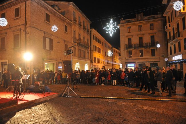 OSIMO - Ieri pomeriggio in piazza Boccolino la tradizionale cerimonia con i cantanti della Civica Scuola di Musica