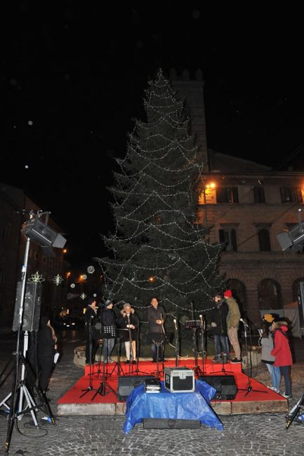 Sulle note di ‘We Are the World’, il brano musicale scritto nel 1985 da Michael Jackson e Lionel Richie, e riproposto dal coro delle Civica Scuola di Musica, ieri pomeriggio è stato acceso l’albero di Natale di Osimo (leggi l’articolo) in un’atmosfera festosa e poetica che nemmeno la pioggia ha cancellato. La raccontano bene le foto di Bruno Severini.