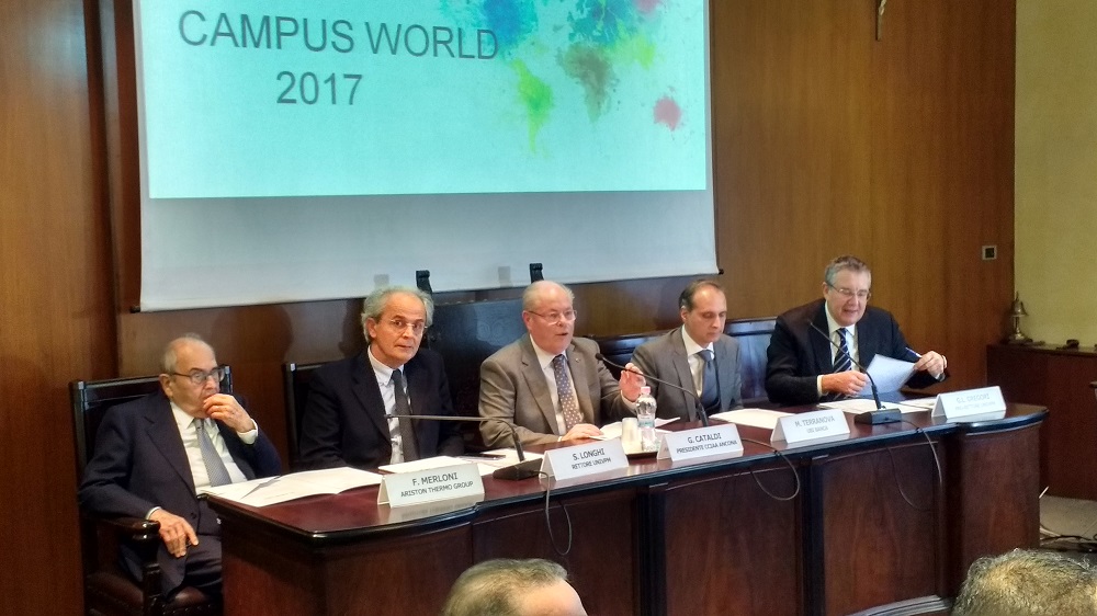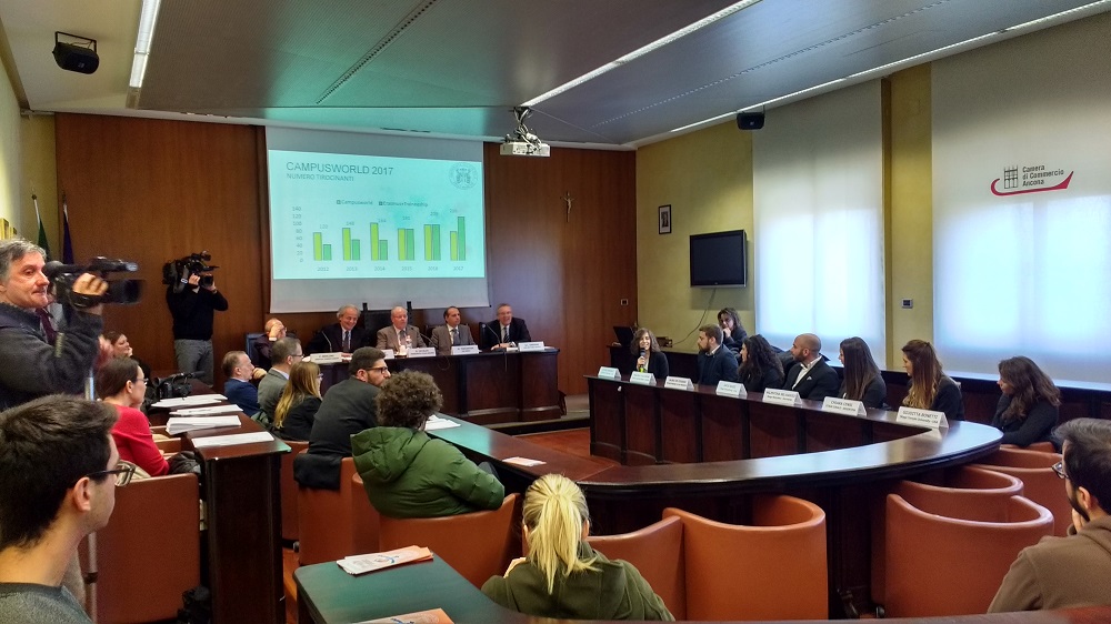 Conclusa l’edizione 2017 è già tempo di pensare al prossimo anno. È online nel sito www.univpm.it il nuovo bando CampusWorld, con scadenza mercoledì 13 dicembre alle 13. “Il progetto CampusWorld, da noi appoggiato fin dalla prima edizione, è in linea con le nostre strategie su due binari – ha commentato il presidente Camera di Commercio Giorgio Cataldi -: da un lato quello legato all’internazionalizzazione, dall’altro a quello riferito al nostro impegno verso un target giovanile e all’avvicinamento del mondo scuola/università/formazione a quello del lavoro (che non può che vederci al fianco dell’Università Politecnica delle Marche). Si tratta di due asset su cui la riforma camerale in atto focalizza la nostra azione peraltro già indirizzata da tempo in quella direzione”. Presente anche un partner fondamentale per i tirocini all’estero, Ariston Thermo Group, con il suo presidente onorario Francesco Merloni. “Siamo stati pionieri dell’attività all’estero e oggi la nostra storia prosegue grazie all’internazionalizzazione – ha spiegato Merloni -. Le Marche sono state terra di emigrazione fino al 1971, ma proprio chi tornava dall’estero era il personale più ambito per le loro conoscenze e capacità”.