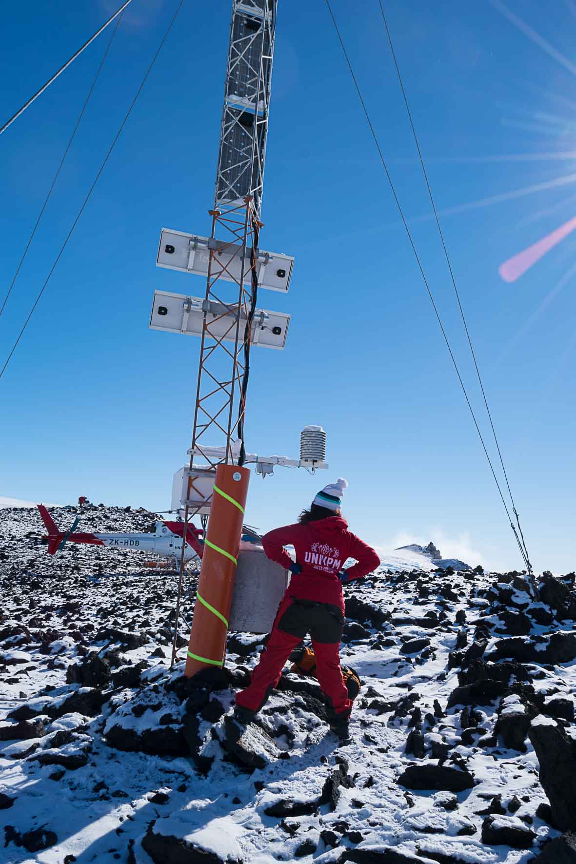 Silvia Illuminati mentre installa il primo deposimetro presso una stazione meteo vicino la base italiana Mario Zucchelli