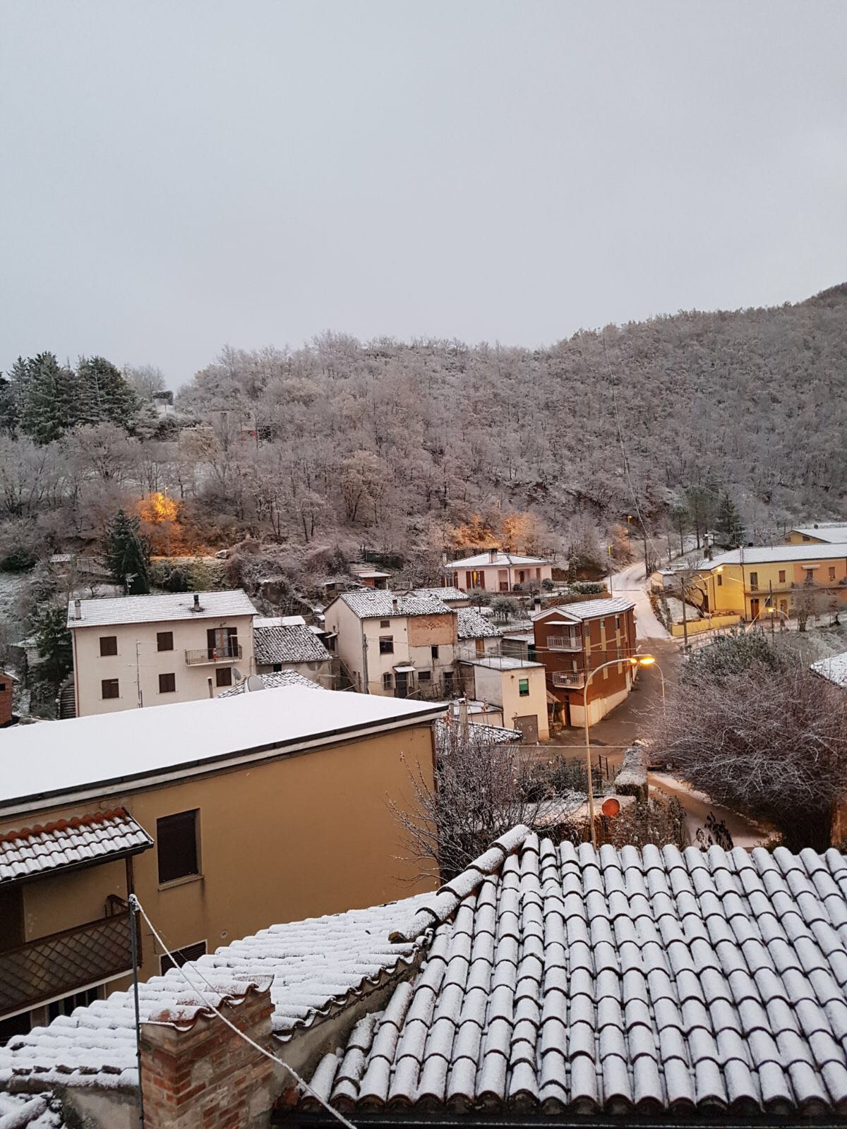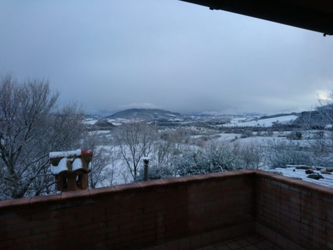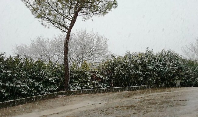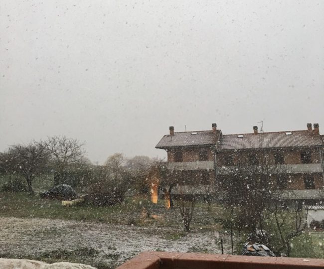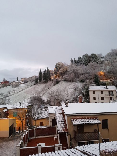 La neve aveva già coperto di un soffice manto bianco le vette dei monti Catria, Cucco e Strega e questa giornata di sabato era iniziata con la pioggia (leggi l’articolo). Da oggi pomeriggio, verso le 15.45 però ha iniziato a scendere a bassa quota anche su Fabriano e sul suo hinterland, da Genga a Sassoferrato. Il cielo si è ingrigito e hanno fatto la comparsa i primi fiocchi gelati. In pochi minuti giardini, prati e colline si sono imbiancati. Il maltempo, in queste ore, sta creando disagi anche ad Ancona e Jesi (leggi l’articolo)