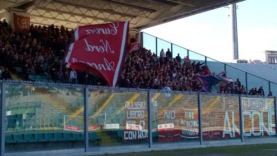 Lo Staffolo ci prova ma con una Ancona così non c’è ne è per nessuno, in questo girone. I ragazzi di Massacesi schierati con un ermetico 4-5-1 si trovano subito i piani scombinati dal gol del capocannoniere del girone. Al primo giro di orologio Storani riceve sul lato corto dell’area e fa partire un cross dalla destra. Apetzaguia sfiora e la palla finisce sul secondo palo dove Mastronunzio di testa spedisce in rete l’1-0. Il gol galvanizza i dorici che insistono, collezionano angoli, e sfiorano il raddoppio con Strano che di testa alza di poco sopra la traversa. Al 21′ azione in verticale dell’Anconitana Marengo per Mandorino che dal cerchio di centrocampo si fa trenta metri palla al piede e scarica per Mastronunzio. Il capitano lascia scorrere il pallone, penetra in area e tu per tu col portiere lo fulmina in diagonale. Il tredicesimo gol stagionale del capocannoniere del girone, serve al Mastro ad eguagliare il record di Fiorini, miglior marcatore in maglia dorica con 71 centri, e ha impresso il marchio di fabbrica della Vipera. E al 6′ della ripresa Mastronunzio sfiora anche il terzo gol ma in torsione da pochi centimetri c’entra il palo. La gara si fa spigolosa su un campo al limite della praticabilità. Lelli concede una mezz’ora a Bartoloni. Esce Apetzeguia che strappa la sufficienza in un ruolo a lui non congeniale. Copre bene la fascia ma perde tanto negli ultimi sedici metri, dove di solito è devastante se schierato da seconda punta. Bartoloni si destreggia bene invece ma proprio nei minuti di recupero Scattolini lo falcia da dietro. Un fallo inutile che lascia a terra l’anconetano dolorante al ginocchio e costretto ad uscire in barella. È l’unico neo di una giornata da incorniciare che esaspera gli animi scatenando un mezzo parapiglia proprio mentre la squadra è sotto il settore ospiti per salutare i tifosi al seguito.