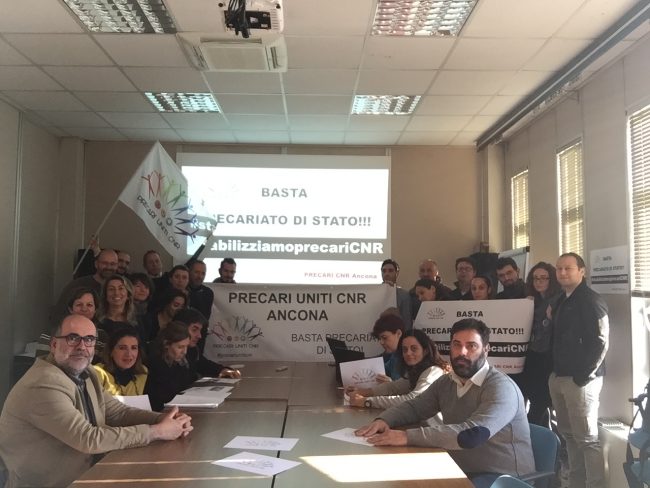 I lavoratori precari e strutturati che hanno indetto l’assemblea permanente del Cnr-Ismar di Ancona