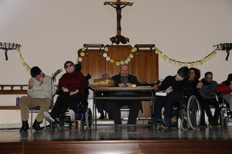 E’ stato messo in scena questa mattina ad Osimo, presso la Chiesa di San Biagio, lo spettacolo “La chiave di lettura”, una recita frutto del lavoro di attività teatrale che la lega del Filo d’Oro dedica da oltre dieci anni ai propri ospiti. Un modo unico ed emozionante per augurare un felice Natale.Protagonista e ideatrice dello spettacolo la Compagnia “Il Cantiere dei Sogni” formata dagli ospiti del Centro di Riabilitazione di Osimo, operatori e volontari. Lo spettacolo è stato ambientato in una biblioteca molto speciale, dove tra le righe di libri sensoriali, gli “attori” hanno scoperto la vera bellezza della vita. Quest’anno al coinvolgimento degli ospiti si è aggiunto quello di due genitori: la recita infatti è stata accompagnata dal clarinetto di Ciro Fornaro e dalle poesie di Fabrizio Vissani, i papà di Salvatore e Valentina.