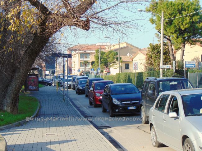 Auto incolonnate in via Esino a Torrette