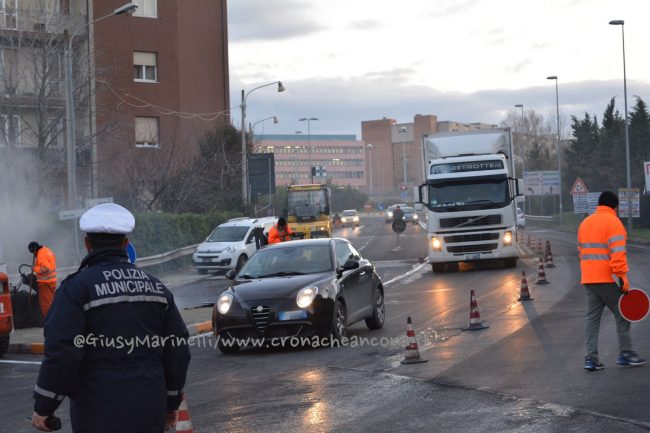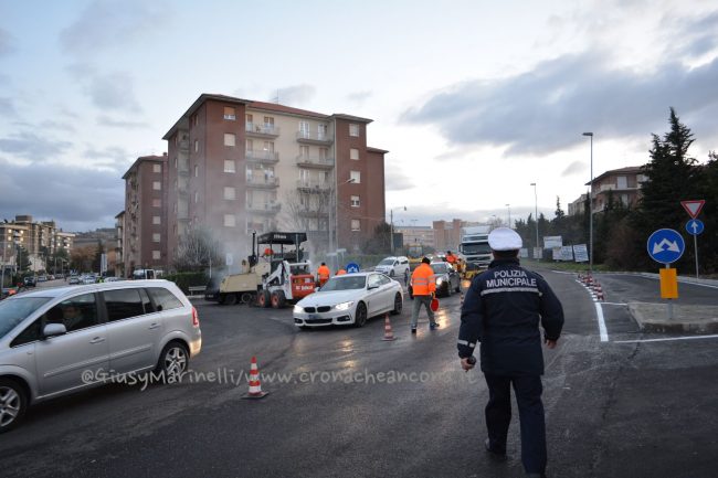 Asfaltature a zero gradi, strade da rifare dopo appena due anni, la rotatoria di Torrette che si inceppa, tutti in fila per lo shopping di Natale. E se in più spuntano anche la video-denuncia di un autista di Conerobus che chatta al volante, il mix diventa esplosivo. Viabilità e mobilità sotto accusa, i sindacati chiedono un incontro urgente alla giunta, mentre domani giovedì 21 in Consiglio comunale sarà l’opposizione ad andare all’attacco con due interrogazioni del consigliere Fi Daniele Berardinelli e della consigliera M5S Daniela Diomedi per avere spiegazioni sui disagi che si sono scatenati a Torrette negli ultimi giorni. Il calvario della rotatoria all’incrocio tra via Conca e via Esino dovrebbe essere concluso: oggi la fine delle asfaltature, nella serata di mercoledì la rotatoria sarà aperta completamente al traffico, da domani solo lavori di rifinitura. Poi mancherà da stendere il tappetino d’usura, rinviato a primavera con le migliori condizioni meteo. Nonostante la fine dei lavori, le polemiche non accennano a diminuire. Tutti in coda negli orari di punta, con le auto incolonnate fino all’ospedale regionale, a causa di quella opera che avrebbe dovuto snellire il traffico pesante.