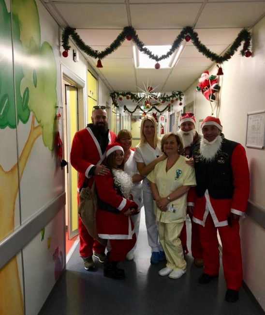 Babbo Natale arriva in moto per salutare i bambini dell’ospedale Salesi. Ieri mattina i Bikers Route 76 Chapter di Jesi sulle loro moto dai motori rombanti hanno regalato sorrisi, allegria e doni ai piccoli ricoverati nei letti dell’ospedaletto di Ancona. I motocilcisti sono stati accolti dal personale sanitario e dagli operatori della Fondazione Salesi.