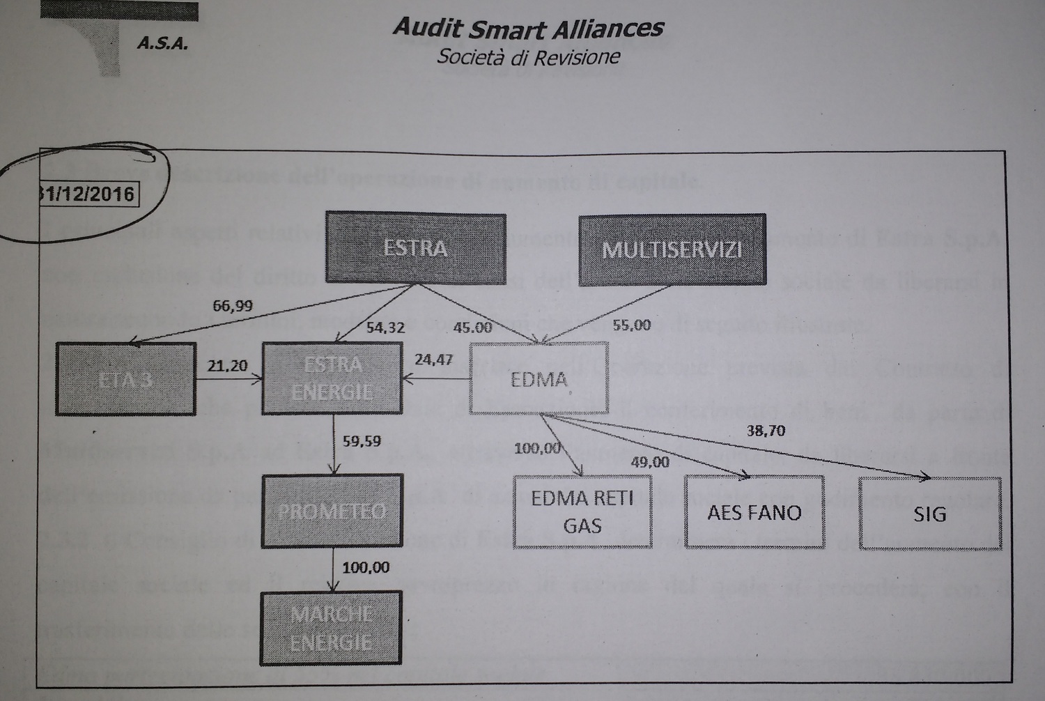 Lo schema delle partecipazioni tracciate dalla società di revisione Audit Smart Alliances, chiamata da Multiservizi a dare il suo pareredi congruità finanziaria