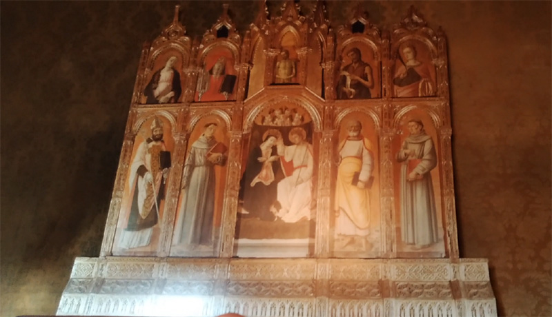 La copia della Pala del Vivarini esposta a palazzo comunale di Osimo. L’originale, che verrà restaurato, si trova invece al Museo Civico di via Campana