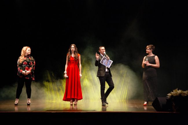 Un momento dello spettacolo, al microfono il presentatore Marco Zingaretti