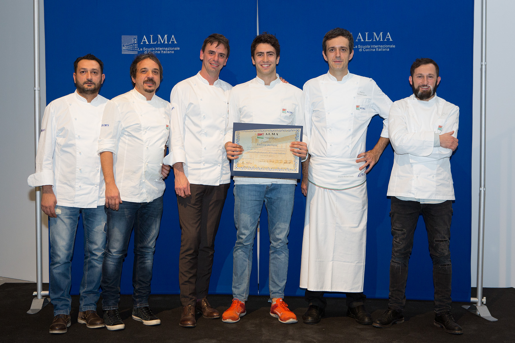 La scuola internazionale di cucina italiana Alma sforna un talento anconetano. E’ il 23enne Andrea Borroni, diplomato al corso di formazione di elite, fondato nel 2004 da Gualtiero Marchesi. Borroni si è diplomato cuoco professionista, dopo aver seguito il corso di 5 mesi e superato la prova d’esame con chef stellati in giuria. Andrea è ora uno dei 78 neo professionisti, tra cui 11 donne, scelti da tutta Italia per questa edizione, che ha visto tra gli altri gli chef Alessandro Breda, Herbert Hintner, Antonia Klugmann, Marc Lanteri, Nicola Portinari e Giuseppe Tinari nel ruolo di commissari d’esame. Una curiosità: in veste di giurati, sono intervenuti anche lo chef Pasquale Laera, Ristorante “La Rei” (a Serralunga d’Alba), già premiato con una stella Michelin, lo chef Nikita Sergeev, Ristorante “L’Arcade” (a Porto San Giorgio) e lo chef Lorenzo Stefanini, Ristorante “Il Giglio” (a Lucca). In comune, Laera, Sergeev e Stefanini hanno un passato come allievi ALMA (e un presente come solide e apprezzate realtà della ristorazione italiana): la loro parabola professionale rappresenta quindi un modello da seguire per tutti gli allievi. Per i neo-diplomati Alma si aprono ora le porte del mondo del lavoro. Con prospettive che sono rosee: infatti, secondo uno studio di InfoJobs, pubblicato il 30 novembre 2017, per quanto riguarda il periodo invernale la professione di cuoco è sul podio tra quelle più richieste. Su un totale di 5.000 posizioni aperte analizzate, i cuochi rappresentano una quota del 15%, preceduti, al secondo posto, da bartender e personale di sala (23%). Miglior studente in assoluto di questa edizione del Corso Superiore di Cucina Italiana è risultato il 39enne marchigiano Francesco Pettorossi, di Porto San Giorgio (Fermo). Pettorossi ha svolto i cinque mesi di stage presso il Ristorante “L’Arcade”, avendo per mentore un professionista come lo chef Nikita Sergeev.