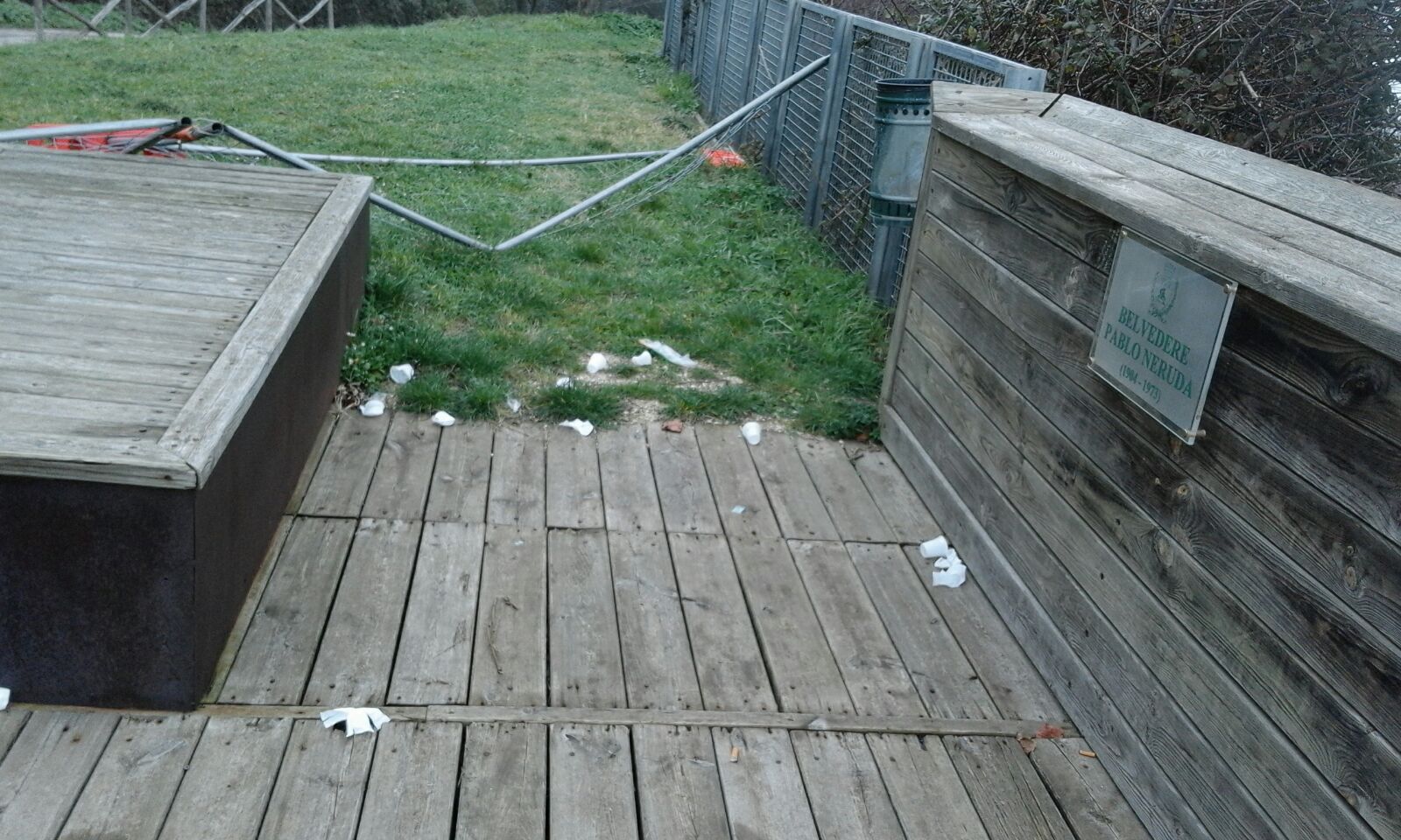 Belvedere Neruda al parco del Cardeto senza pace, dopo le panchine incendiate dello scorso maggio, i vandali sono tornati in azione. Un vero accanimento, visto che la terrazza panoramica che si apre sul cimitero degli ebrei già non versa nelle migliori delle condizioni. Presa di mira questa volta la recinzione che delimita l’area, transennata perché pericolosa. Il belvedere in legno e le panchine hanno bisogno di una profonda manutenzione, già nei mesi scorsi l’area era stata interdetta al pubblico perché pericolante, tra assi scheggiati e divelti. Tra sabato notte e domenica, i teppisti hanno abbattuto le grate per aprirsi un varco.