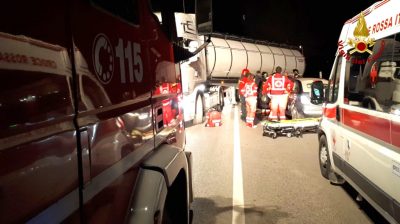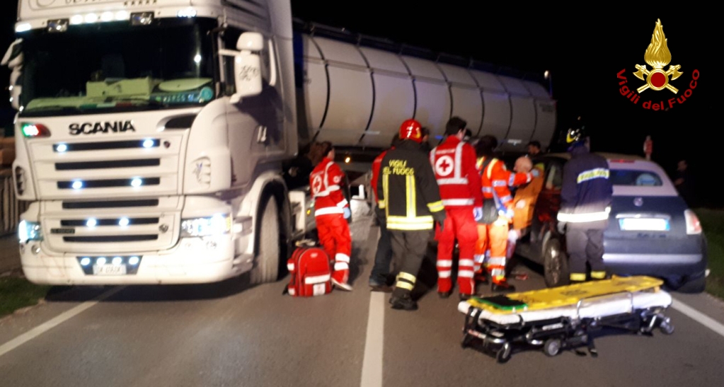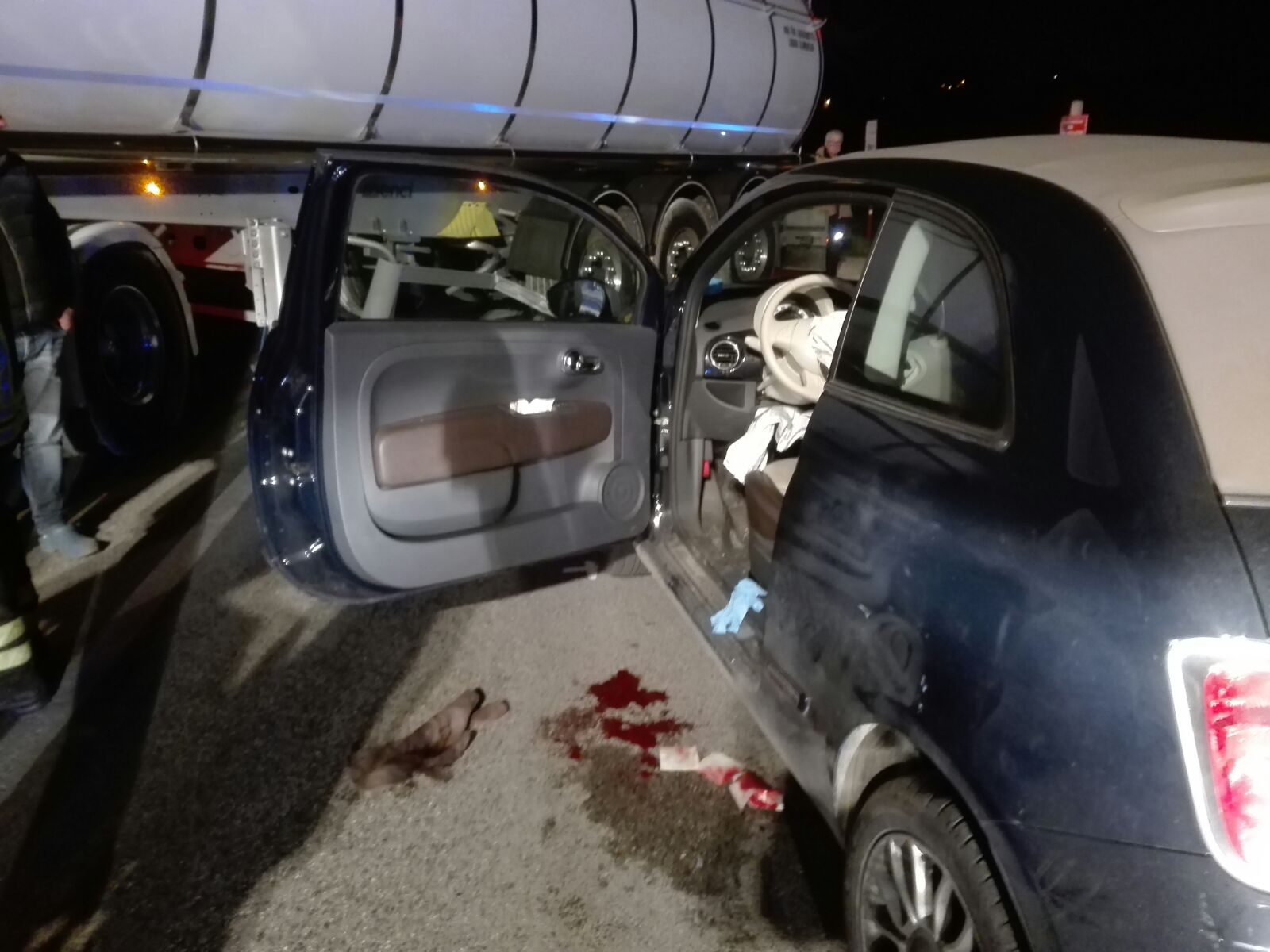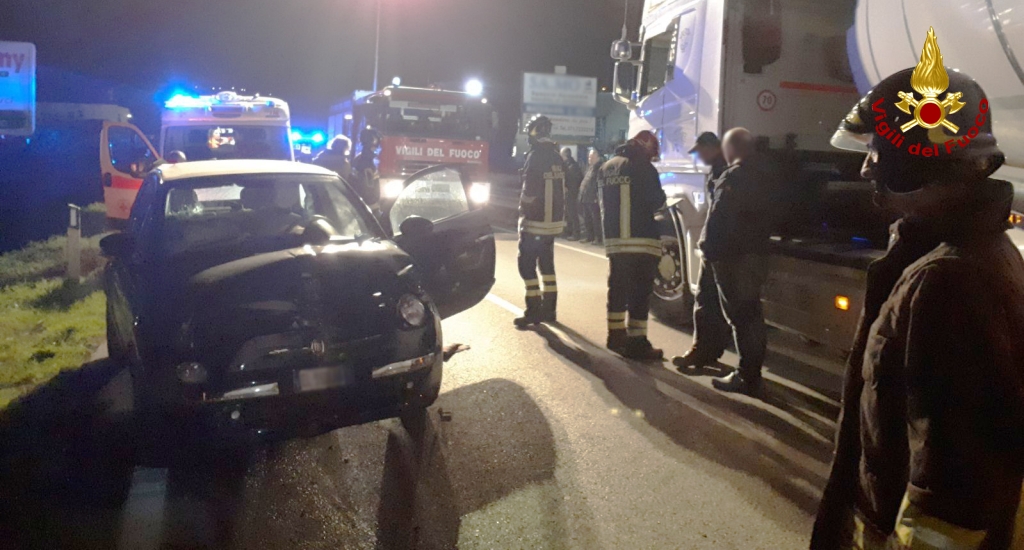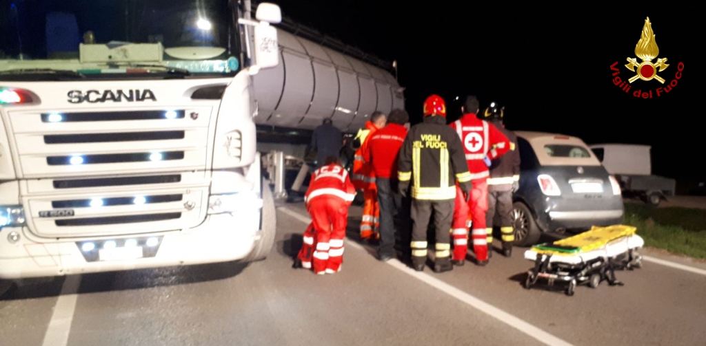 Fiat 500 contro autoarticolato. L’incidente è successo alle 18,15 circa, quando i vigili del fuoco sono intervenuti in via d’Ancona, la Sp 361, al Km 4 nei pressi dell’oleificio Guaitini, poco distante dalla frazione di San Biagio. Per cause da chiarire, la Fiat 500, guidata dall’83enne osimano L. R., si è scontrata con un autoarticolato per il trasporto alimenti di una ditta osimana, condotto da G.F., 51 anni di Osimo, che si stava immettendo sulla Provinciale. I vigili del fuoco hanno soccorso il conducente della vettura, che ricevute le prime cure sul posto, è stato trasportato dal personale della Croce Rossa in servizio di 118 al pronto soccorso di Torrette per accertamenti e per essere medicato ad un ginocchio ferito. Poi hanno messo in sicurezza i mezzi e aiutato a gestire la viabilità, caotica nell’ora di punta. La strada per circa trenta minuti è rimasta chiusa al traffico. Stando ai primi rilievi della Polizia locale di Osimo, intervenuta sul posto con una pattuglia, l’autoarticolato stava per entrare su via D’Ancona, provenendo da una strada perpendicolare quando si è scontrato con la Fiat. Il rimorchio era vuoto e non trasportava alcun carico in quel momento.