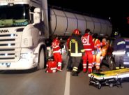 INCIDENTE – Il Tir stava immettendosi sulla Sp 361 da una strada perpendicolare quando si è scontrato con l’utilitaria. L’anziano ferito ad un ginocchio è rimasto sempre vigile e cosciente. Sul posto Polizia locale, vigili del fuoco e Croce Rossa
