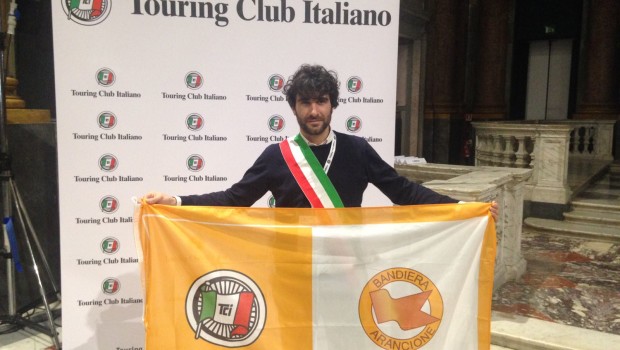 Matteo Principi, sindaco di Corinaldo, con la bandiera arancione