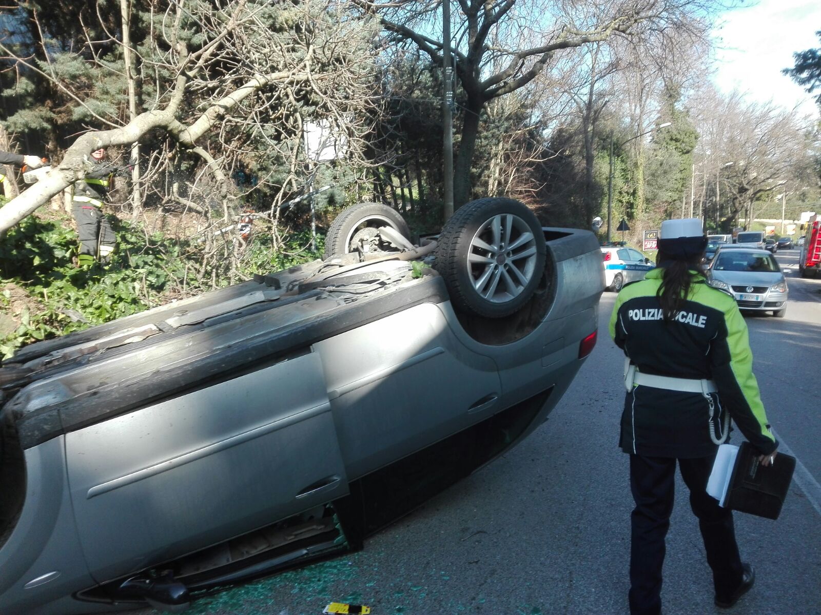 Ancona un incidente stradale in via Marco Polo, stavolta accaduto all’altezza della rotatoria del Conte Orsi. P. F.F.,, disoccupato di 49 anni, residente a Campofilone, mentre transitava al volante di una Fiat Croma sull’arteria di accesso di Osimo con direzione Macerata, probabilmente per un colpo di sonno, ha perso il controllo della vettura che guidava ed è finito nella scarpata a destra della carreggiata. Prima il mezzo si è inerpicato sulla scarpata, poi si è ribaltato e ha concluso la sua corsa tornando a ruote all’insù in mezzo alla strada. Il conducente, quasi miracolato, se l’è cavata con una ferita superficiale alla testa ed è stato trasportato dall’ambulanza della Croce Rossa al pronto soccorso dell’ospedale Ss. Benvenuto e Rocco di Osimo. Davanti agli agenti della Pm avrebbe ammesso di non essere riuscito a dormire, stanotte, per una situazione familiare complessa e delicata. Per liberare l’uomo della prigione di lamiere è intervenuta anche una squadra di vigili del fuoco del distaccamento di San Sabino. La Polizia locale di Osimo ha invece gestire il traffico, impazzito con i clacson che suonavano senza tregua, e rilevato gli estremi del sinistro. Sul posto anche la ditta specializzata per pulizia strada da cristalli e liquidi del motore persi dal mezzo sull’asfalto. L’incidente è avvenuto verso le 10:30 circa di stamattina. Mno di 24 ore fa, proprio ieri pomeriggio era stato rilevato un altro schianto in via Marco Polo ad appena 200 metri dal fuori strada di stamattina. Via Marco Polo, insomma, continua a restare in vetta alla classifica dei punti critici e più pericolosi della viabilità cittadina.