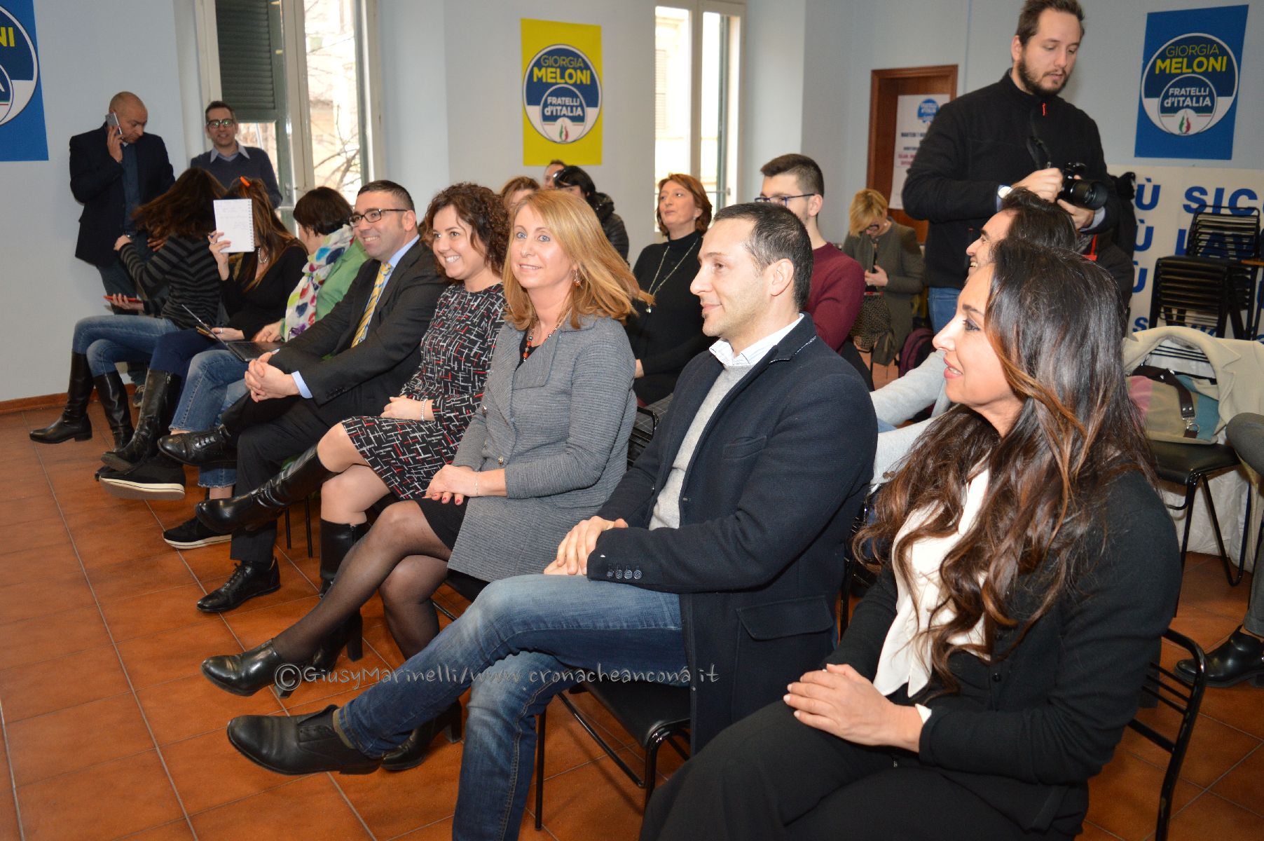 Per la Camera uninominale Ascoli-San Benedetto: capolista Marco Fioravanti, presidente del Consiglio comunale di Ascoli Piceno, mentre sempre per la Camera, uninominale Ancona, Laura Schiavo. Per il plurinominale Camera Ascoli-Fermo-Macerata: capolista è Francesco Acquaroli, sindaco di Potenza Picena e già consigliere regionale; Lucia Albani (San Benedetto); Andrea Putzu (Porto Sant’Elpidio); Romina Tortolini (Monte San Giusto). Per il plurinominale Camera Ancona-Pesaro: capolista il consigliere comunale di maggioranza Antonio Baldelli (Pergola), Maria Assunta Patregnani (Corinaldo), Stefano Benvenuti Gostoli, ex consigliere comunale di Ancona, Cristina Cannas. Per il plurinominale Senato Marche: capolista Carlo Ciccioli, già parlamentare, consigliere comunale di Ancona e consigliere regionale, Elena Leonardi, consigliera regionale di Porto Recanati, Nicola Baiocchi (Pesaro) e Paola Pantanetti (Fermo).