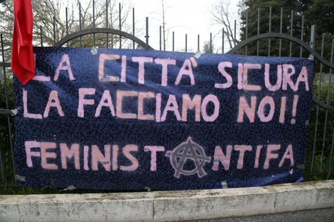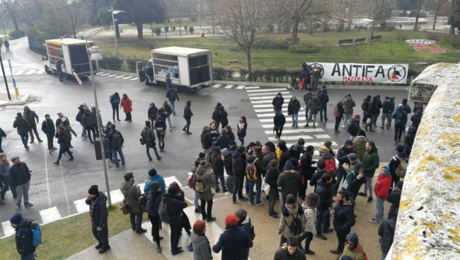 L’arrivo delle prime decine dei partecipanti al corteo antifascista