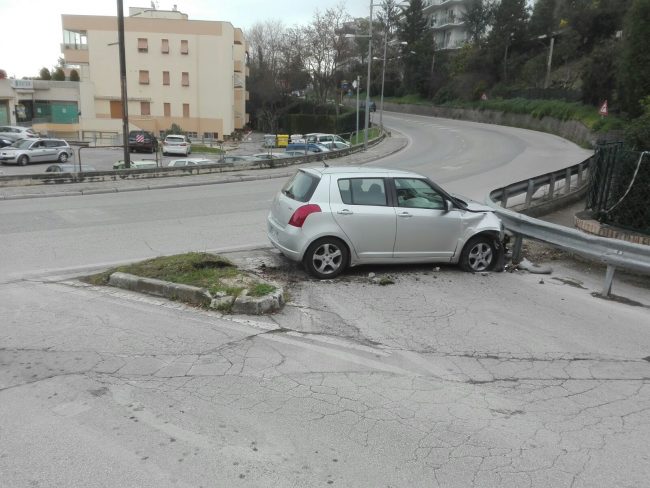 Ore 10 circa, va in onda l’ennesimo incidente stradale all’incrocio tra via Marco Polo e via Vecchia Fornace ad Osimo. Stavolta però l’impianto viario non c’entra.G.M.F., 57 anni, nativa di San Severo ma residente a Osimo, stamattina ha perso il controllo dell’auto che guidava, una Suzuki Swift, e dopo aver travolto un segnale stradale si è schiantata contro il guard rail senza coinvolgere e travolgere altri veicoli nella sua traiettoria. All’origine del fuori strada potrebbe esserci stato un momento di banale distrazione o un malore. La donna è stata trasportata al pronto soccorso dell’ospedale di Osimo e sul posto è intervenuta una pattuglia della Polizia locale.
