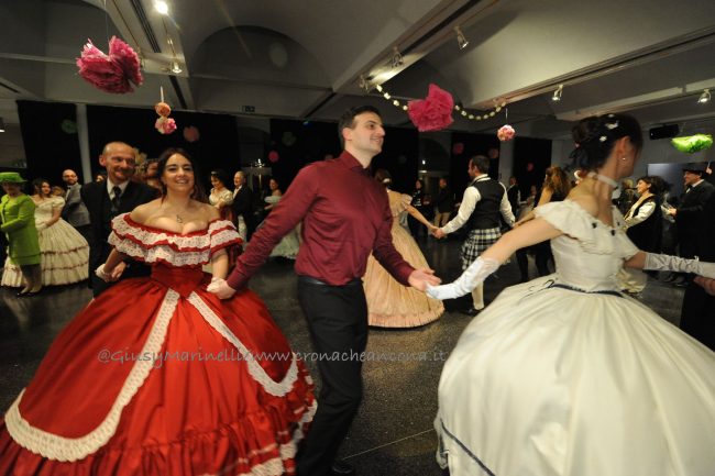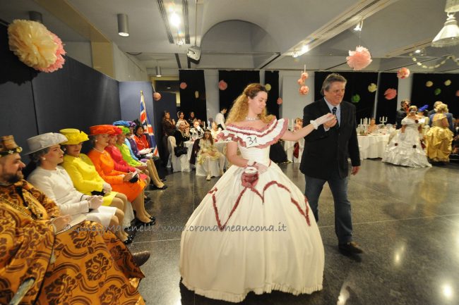 C’erano anche le ‘Regine’, il gruppo mascherato marchigiano che si è classificato terzo all’ultima edizione del Carnevale di Venezia, tra gli ospiti del ‘Gran Ballo a Corte’ organizzato dall’Accademia di danze ottocentesche e dal Comune di Ancona alle Muse. Dopo lo spettacolo in centro città con Cristina D’Avena, sabato sera i festeggiamenti per il Carnevale si sono spostati nel salone delle feste del teatro cittadino. Il ballo in costumi d’epoca, ispirati agli abiti in voga tra il Quattrocento e l’Ottocento, ha fatto registrare il tutto esaurito e ha permesso ai partecipanti di cimentarsi nelle danze tratte dai manuali storici dei grandi maestri, grazie anche alla guida del professor Roberto Lodi della Scuola di danza ottocentesca e danze tradizionali scozzesi. Una serata raffinata dove le dame hanno potuto sfoggiare i loro abiti da sera, da quelli d’epoca a quelli più attuali, terminata con la premiazione dei costumi più belli e originali. Nella giuria c’era il gruppo delle ‘Regine’ (maschere che riproducono l’abbigliamento della Regina Elisabetta, declinato in colori vivaci, con gli immancabili cappellini in tinta) e i ‘Bagnanti di Senigallia’ dei fratelli Anna e Lorenzo Marconi, che nel 2016 hanno vinto il primo premio a Venezia. Gli ospiti d’onore arrivavano invece da fuori regione e da oltreconfine: il gruppo valdostano MasquAoste, l’associazione Maschere Veneziane di Francia provenienti da Marsiglia e il gruppo Veneziani del lago Lemano, arrivato da Ginevra. A premiare i costumi più belli sono stati il vicesindaco Pierpaolo Sediari e l’assessore Stefano Foresi. «Il clima festoso e rilassato – è il commento di Paola Pennacchietti, presidente di Accademia di Danze Ottocentesche – ha permesso di intrecciare nuove conoscenze, proprio come accadeva nei balli a corte. La serata è stata organizzata all’insegna del sano divertimento, della cultura e dell’educazione, facendo tesoro di quella tradizione ottocentesca che ha ancora tanto da insegnarci e che non deve andare perduta».