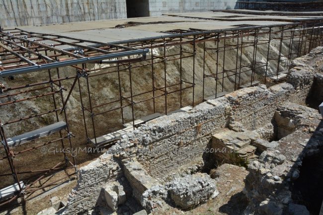 La nuova tettoia sarà molto più bella, elegante, imponente e funzionale di quella originaria. Sarà realizzata in materiale sintetico tipo plexiglas, ma più resistente alle intemperie (vento, pioggia, corrosione) e sorretta da una rete verticale e orizzontale di pali in acciaio. Prevista anche un’accurata pulizia di tutta la zona archeologica, disposta su più strati, con opere edilizie risalenti ad un periodo che va dalla prima realizzazione del porto romano del II sec. a.C. fino al VI secolo d.C. Non è escluso che una volta completato questo intervento, la Soprintendenza valuterà la possibilità di installare nel sito una seconda passerella, interna allo stesso, tale da consentire ai visitatori un percorso “full immersion” tra i reperti.