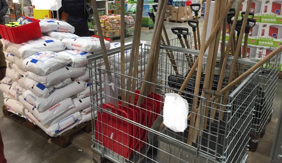 Non solo generi alimentari, tra gli acquisti più gettonati in questo fine settimana: catene da neve, e soprattutto pale – praticamente introvabili nel 2012 durante l’ondata eccezionale di maltempo -, con persone in fila all’ingresso dei negozi di fai da te prima dell’apertura, e sale. E tra le corsie dei negozi spuntano anche mini turbine. Infine il capitolo abbigliamento: aumentati tra venerdì e sabato gli acquisti di abiti caldi e specializzati per la neve, in alcuni casi non solo per proteggersi dal freddo ed affrontare eventuali spostamenti a piedi in città, ma anche per godere dell’aspetto ludico della neve, rara in città: guanti e giacconi, scarpe e cappelli per adulti e bambini. Nei negozi di articoli sportivi, a ruba ogni capo in tessuto impermeabile, dagli articoli per la pesca fino agli sport invernali.