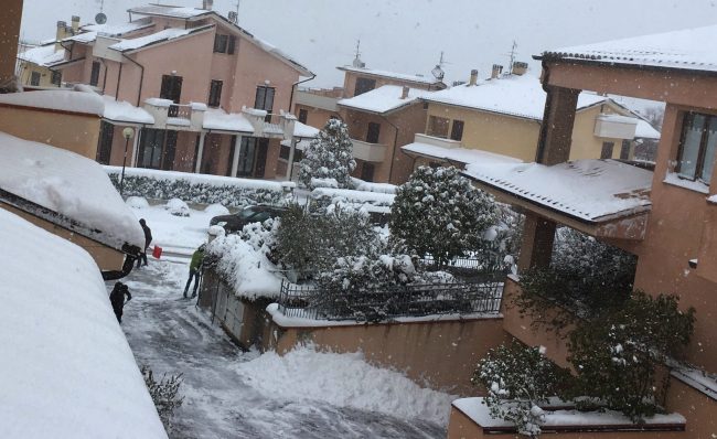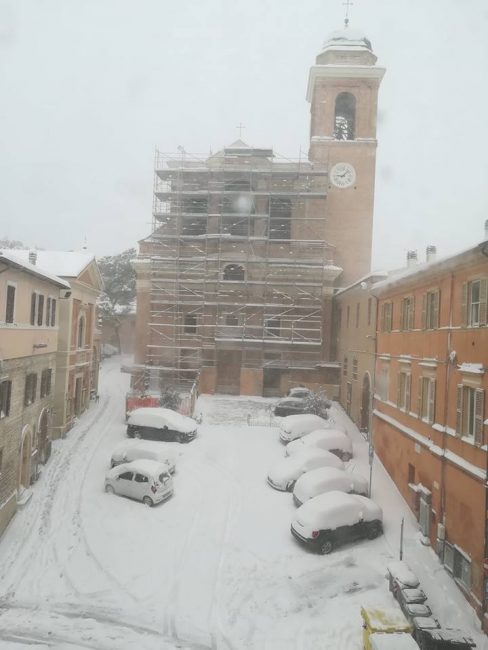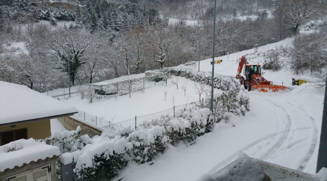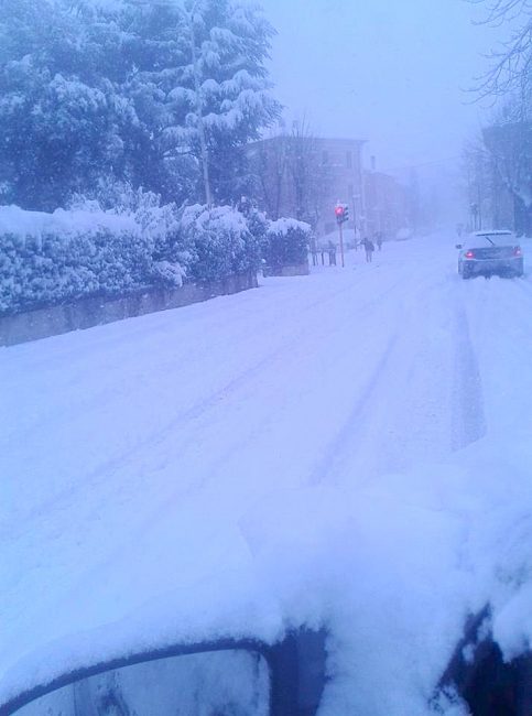 Fabriano è coperta da una spessa coltre di neve, 20 cm sono già caduti, in città. Molta di più nelle frazioni più alte. Molta neve è stata spostata dal vento e si è accumulata in vicoli e angoli della città più chiusi. I fiocchi sono caduti ininterrottamente tutta la notte, spinti dal Burian, il vento siberiano che tutti stavano aspettando ormai da due giorni.  Nelle frazioni come Poggio San Romualdo, Cantia, Vallemontagnana, la situazione è naturalmente più critica. I mezzi comunali sono in transito da stanotte anche nelle frazioni ma la neve abbondante ricopre le strade già spazzate. Dove il servizio è rimasto un po’ indietro si sono già fatte sentire le lamentele via social networks dei cittadini, che comunque, devono armarsi di pala e pazienza per liberare le strade private. Lamentano, alcuni, l’assenza di mezzi comunali negli stretti vicoli del centro. Centro storico silenzioso, che ha acquisito una nuova magia con la neve, ma che è diventato inaccessibile alle automobili. Oggi scuole chiuse, di ogni ordine e grado, per ordinanza dei sindaci di non solo di Fabriano, ma anche di Cerreto D’Esi, Serra San Quirico, Genga e Sassoferrato. La neve continua a cadere abbondantemente e non accenna a fermarsi. Attorno alle 11, il sindaco Gabriele Santarelli ha comunicato di aver firmato l’ordinanza di chiusura delle scuole del territorio comunale anche per le giornate di domani e dopodomani 27 e 28 febbraio. E’ stato attivato il Centro Operativo Comunale aperto 24 ore su 24 con il numero per le segnalazioni di emergenza, 0732 709112.