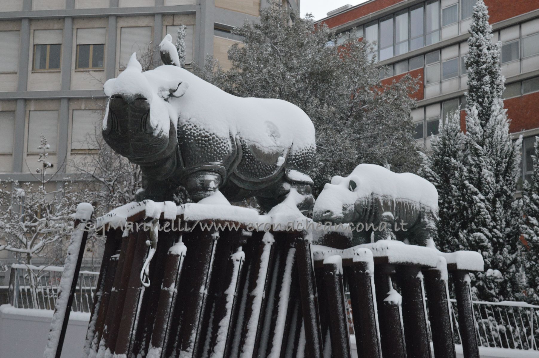 Più di 50 centimetri di neve a Offagna, almeno 30 ad Osimo che hanno creato disagi nella viabilità secondaria con mezzi e camion finiti fuori strada, mentre la rete stradale primaria è transitabile con catene. La Polizia locale sta cercando di rispondere a tutte le chiamate ma in questo momento saranno assolte quelle d’emergenza. In città ci sono negozi e aziende “chiuse per neve” come in altre realtà. Gli spalatori con le miniturbine stamattina sono arrivati anche in centro storico. A Camerano per tutto il pomeriggio di ieri gli automobilisti in difficoltà a causa del ghiaccio formatosi sul manto stradale sono stati aiutati dagli uomini della protezione civile. “Per l’ennesima volta – ricorda l’assessore Costantino Renato– l’invito è quello di evitare di prendere l’automobile e se proprio lo si deve fare, deve essere solo ed unicamente per effettive e concrete necessità. Purtroppo troppe auto stavano transitando come se fosse un giorno qualunque, facendo passeggiate o dello shopping che sicuramente può essere fatto anche nei prossimi giorni (il negozio non fugge!)”.