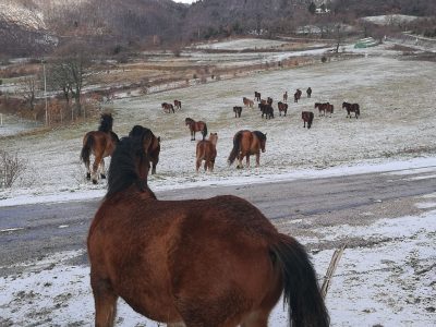 con la temperatura che di notte va in picchiata fino a meno 16; ma è questione di ore, perché giovedì mattina se tutto va liscio la Protezione civile, carabinieri forestali e vigili del fuoco prevedono di aprire di nuovo la strada coi mezzi cingolati, e di portare così balle di fieno in rifornimento: «Siamo in contatto con Protezione civile, i Vigili del fuoco e le autorità. Tutto dovrebbe sbloccarsi entro giovedì mattina – spiega al telefono Armando Bettini, il presidente della Cooperativa produttori e allevatori Montelago, a cui appartengono i destrieri – Cresciamo una razza molto resistente al freddo, quella del cavallo del Catria, che prende il nome dall’omonimo monte. Abbiamo lassù trentadue cavalle fattrici, uno stallone e quindici cavallini di un anno. Vivono tutto l’anno allo stato brado, come è nella loro natura. Sono riuscito a salire l’ultima volta domenica, quando di neve ce n’era ancora un velo». Poi è arrivato Burian, coi suoi picchi di gelo che hanno ammantato Montelago e Piancerreto. Non è la prima volta che i fieri e bellissimi catria restano isolati lassù. È già successo nel 2012 e ancora prima con la nevicata dal 2005 quando sono dovuti arrivare con gli elicotteri per lanciare al pascolo il foraggio. Per ora a Montelago ha smesso di nevicare, ma le temperature restano ghiacciate. Spalata la neve nelle strade, si attende che giovedì i cavalli potranno tornare a nutrirsi di fieno e a farsi accarezzare dai loro allevatori.