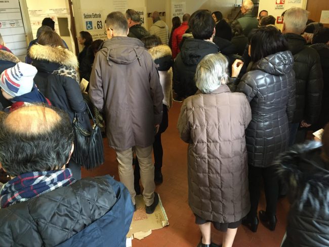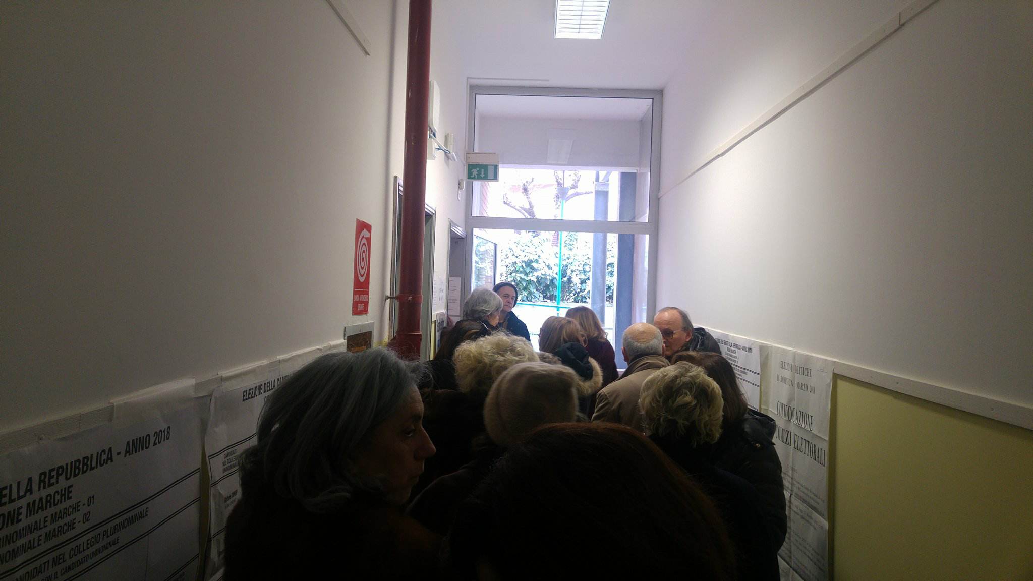 Aggiornamento ore 18.15 – Continuano a registrarsi lunghe code di elettori e tempi di attesa dilatati per votare in molti seggi della provincia, come nel resto d’Italia. La prefettura di Ancona sta monitorando la situazione. La rimozione del talloncino anti-frode dalle schede esige tempi più lunghi. Ad Osimo, in particolare diversi cittadini hanno telefonato all’ufficio elettorale del Comune per protestare e raccontare i disagi legali alle file che scorrono a rilento in alcuni seggi. Sporadica, ma comunque segnalata, anche la presenza di italiani residenti all’estero e iscritti nel regsitro dell’Aire, che tornati proprio oggi nelle Marche hanno chiesto di poter votare nei seggi della città natali. Una richiesta manifestata, però, fuori tempo massimo. Alcuni uffici elettorali della provincia, contattati i consolati del Paese di residenza degli elettori e verificata che la spedizione del plico elettorale era stata fatta all’indirizzo estero, non escluso dal voto questi elettori per non incappare nel rischio del voto doppio.