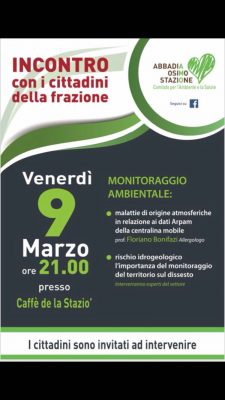 Domani, venerdì 9 marzo, ci sarà il secondo incontro organizzato dal comitato Salute ed Ambiente di Osimo Stazione e Abbadia, in materia di monitoraggio dell’aria. “Finalmente l’Arpam ci ha consegnato i dati della centralina e saranno relazionati dal Prof Bonifazi, assente nel primo incontro per influenza, e correlati alle malattie che derivano dall’inquinamento” annuncia in una nota stampa lo stesso comitato. Nel corso dell’incontro si parlerà anche di territorio dopo l’emergenza neve e pioggia. “Canali, scoli e fossi della frazione a che punto sono? – domanda il comitato- Il rimpallo della loro pulizia tra gli enti competenti non rasserena per nulla i residenti della frazione , già provati dalle precedenti alluvioni. Di questo parleremo con il geologo Chelli che ci relazionerà sul monitoraggio e messa in sicurezza del territorio. L’appuntamento è per le 21 di domani, al Bar della Stazione. Tutta la cittadinanza è invitata ad intervenire, non dobbiamo abbassare la guardia”.