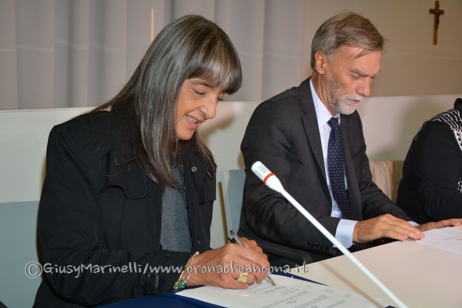 L’ex provveditore delle opere pubbliche Maria Lucia Conti con l’ex Ministro Graziano Delrio a Palazzo degli Anziani per il protocollo di intesa sul lungomare nord del 12 ottobre 2017