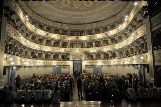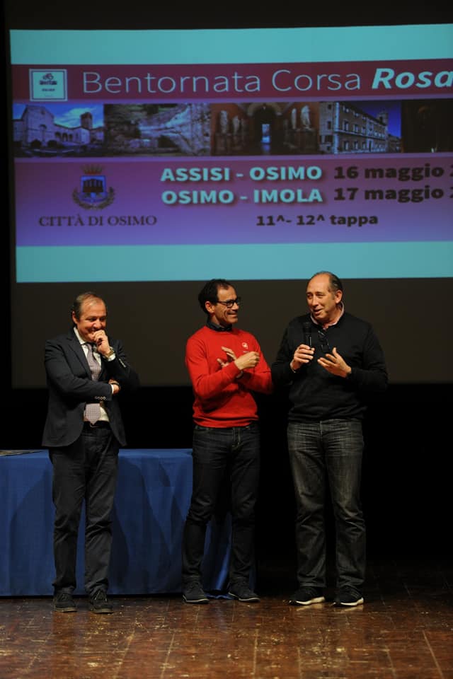 All’incontro di presentazione era presente il gotha del ciclismo nazionale. La cerimonia si è aperta con un minuto di silenzio in omaggio a Fred Mengoni, scomparso recentemente. Poi la proiezione di un video in suo onore. “Un reperto storico – ricorda ancora il sindaco Pugnaloni – con le immagini di un giovanissimo e talentuoso Greg Lemond, il suo pupillo, la sua creatura, ancora dilettante e già proiettato a diventare uno dei più grandi campioni della storia del ciclismo internazionale. E’ stata anche presentata la squadra del Club Ciclistico Campocavallo”. Sul palco de La Nuova Fenice hanno preso la parola campioni del calibro di Ivan Basso, Alessandro Petacchi, Andrea Tonti e il ct della nazionale Davide Cassani. Passione, aneddoti e ricordi raccontati da chi ha vinto tantissimo nel ciclismo che conta. Erano presenti anche i vertici nazionali dell’organizzazione della carovana rosa, Mauro Vegni e Stefano Allocchio. “Il Giro d’Italia è un pezzo di storia del nostro Paese” ha detto nel suo intervento Alessandra De Stefano, giornalista Rai e conduttrice del ‘Processo alla tappa’. Non è mancato un pensiero in omaggio al compianto Michele Scarponi.