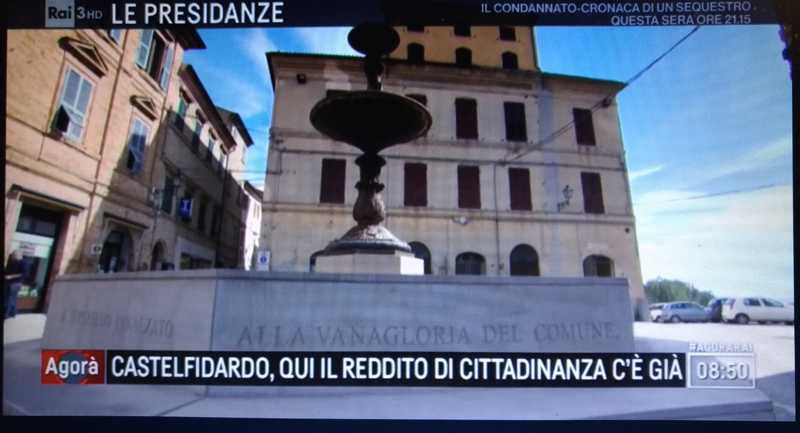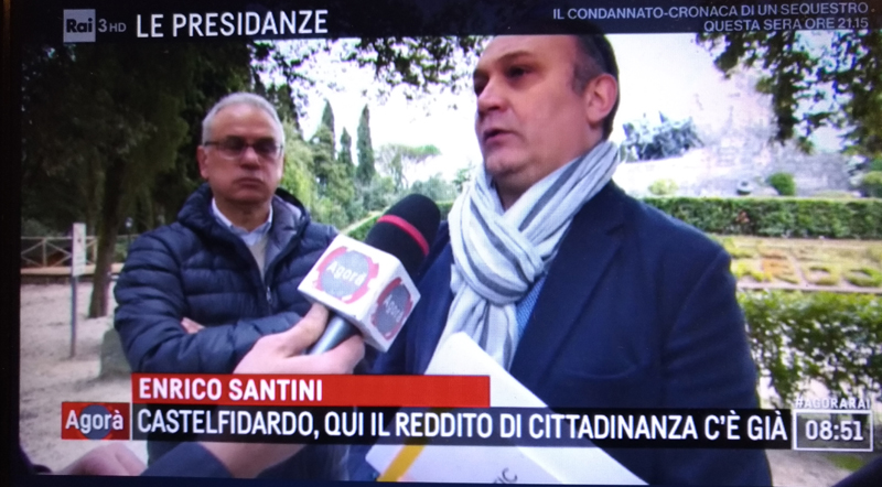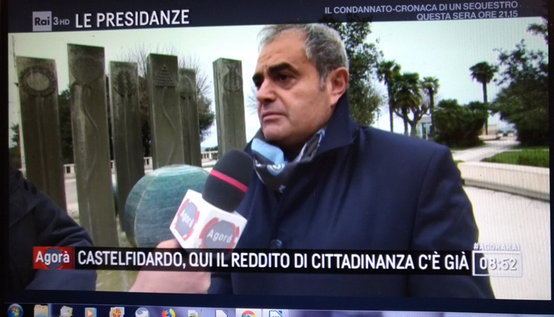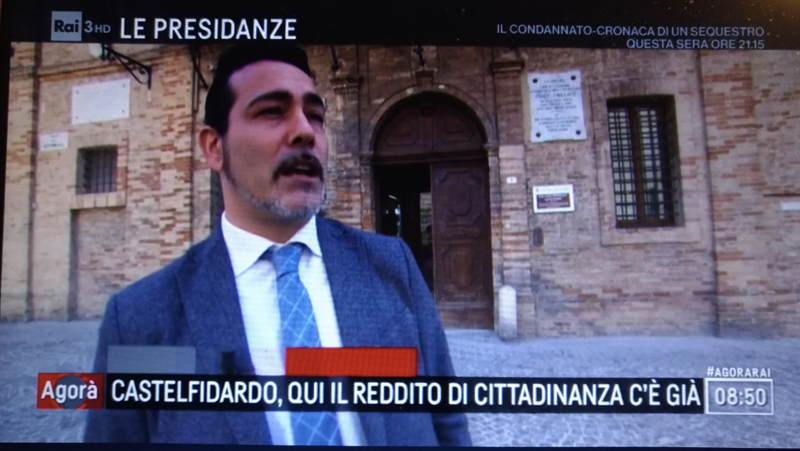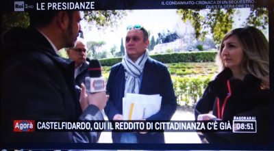 Diventa nazionale il caso del reddito di cittadinanza, varato dalla giunta 5Stelle di Castelfidardo, per rilanciare l’occupazione. Stamattina dei licenziamenti del personale già assunto per far spazio ai borsisti si è occupata anche “Agorà” la trasmissione di Rai Tre. Con un suo inviato il programma Tv ha cercato di far capire ai telespettatori italiani le problematiche di queste ‘borse lavoro’, in un frangente politico in cui ‘il reddito di cittadinanza’, in una delle sue sfumature, è al centro del dibattito politico nazionale e colpisce l’opinione pubblica. Il giornalista televisivo ha intervistato il sindaco Roberto Ascani, un cuoco che ha affrontato i 6 mesi di borsa lavoro in un ristorante della zona pagato 5 euro all’ora e un imprenditore che alla fine ha assunto una delle due borsiste.