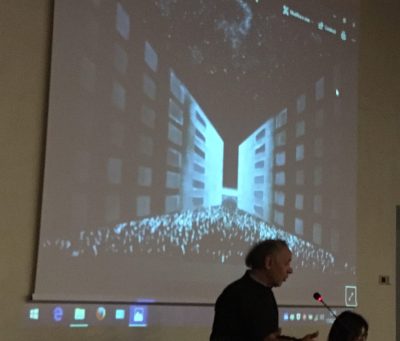 Leonardo Nobili, l’autore della scultura “La porta dell’infinito” posizionata al’ingresso di Fabriano, amata e odiata dai fabrianesi, ha incontrato nel pomeriggio la cittadinanza nella biblioteca multimediale Romualdo Sassi. La scultura “La porta dell’infinito” in acciaio e vetro, realizzata nell’intenzione dell’autore con il fine di rappresentare la frantumazione dell’esistenza – leit motiv dell’artista di Montelabbate – era stata criticata da alcuni fabrianesi che non la capivano e la consideravano senza mezzi termini “brutta”. Soprattutto dal primo cittadino Gabriele Santarelli. La sua intenzione manifestata in più occasioni, era stata di togliere dalla principale rotatoria di Fabriano in cui era stata posizionata. Santarelli: “Non abbiamo mai nascosto il fatto che quell’opera non ci convince. Non ci convince nel suo significato”, e ancora “non ci convince nel suo posizionamento, non ci convince nel fatto che non sia mai stato accettato dalla maggioranza dei cittadini fabrianesi, però è giusto ascoltare il suo autore e magari avviare un dibattito”, aveva scritto Santarelli su Facebook, invitando comunque all’incontro con l’artista di oggi pomeriggio. Lo scultore di Montelabbate ha parlato a braccio con tanta modestia, quasi giustificandosi per il proprio linguaggio “estremo”. “Con ‘Frammenti nello spazio’ – ha detto oggi Nobili – hanno iniziato a criticarmi: io ho ammesso di star seguendo un percorso che mi porta in avanti. A un certo punto mi sono detto, il bello e il brutto non mi importa più, ma mi pongo la domanda di cosa racconto alla società”. Nobili ha raccontato di essere partito dall’arte figurativa per poi interpretare diversi linguaggi artistici, dalla pittura alla scultura, dall’installazione alla fotografia, alla performance, fino al video d’arte, declinati nell’informale. Realizzò opere per scuola del libro di Urbino, litografie, sculture. Ha lavorato a Parigi, Monaco, New York. Nobili ha illustrato le tante opere proiettate alle sue spalle, cercando di sciogliere i significati dietro alla forma apparentemente incomprensibile: “Io scavo dentro l’anima. Ad esempio quando ho lavorato a New York, la sera vedevo un fiume rosso di luci, che ho rappresentato in questo modo”, dice indicando un’immagine di uno squarcio verticale rosso sangue in uno sfondo nero. “Con mie cosiddette ‘frantumazioni’, stravolgendo la realtà per portarla nel mio mondo, voglio rappresentare l’uomo attraverso l’arte. Non volevo diventare un artista di mercato ma lasciate un messaggio.