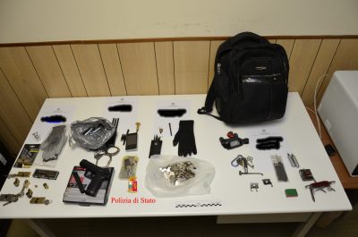 Chiavi passpartout, jammer, una pistola ad aria compressa, serrature, grimaldelli e blister antitaccheggio. È la sequela di strumenti che questa mattina hanno sequestrato gli agenti della Squadra Mobile dopo un blitz effettuato in un appartamento di un 38enne moldavo già conosciuto per reati predatori. Secondo la polizia, tutti gli strumenti sarebbero serviti per compiere furti o rapine. In pratica, l’abitazione dell’uomo era stata trasformata in un laboratorio di meccanica dove effettuare tutti gli esperimenti necessari per forzare serrature, aggirare sistemi di allarme o di sicurezza. In particolare, i poliziotti hanno rinvenuto: una chiave in grado di aprire le diverse serrature dei distributori automatici, una serie di chiavi “passpartout” in grado di aprire lucchetti e serrature di diverso genere, un “blister” antitaccheggio idoneo ad aprire le confezioni di sicurezza per la custodia dei dispositivi elettronici di valore, una pistola ad aria compressa in metallo priva di tappo rosso, un paio di manette di sicurezza, guanti e varie calamiti in grado di pilotare i congegni metallici. Oltre agli accessori manuali sono stati sequestrati pezzi di elettronica. Tra questi, un dispositivo in grado di rilevare la presenza di infrarossi in modo da aggirare eventuali sistemi di allarme e un “jammer”, ovvero un disturbatore di frequenza. Il 38enne è stato denunciato per possesso ingiustificato di oggetti atti allo scasso nonostante il suo tentativo di legittimare il possesso del materiale come una sua passione personale.