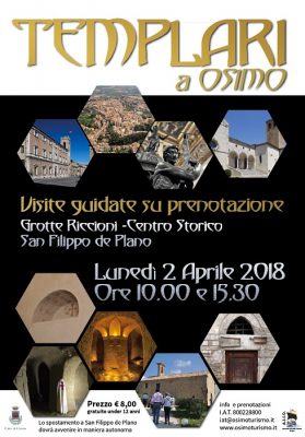 A Pasquetta è invece prevista l’apertura straordinaria, alle ore 10 e alle 15.30, delle grotte private Riccioni (nel centro storico) con simbologia templare e della chiesa templare di San Filippo De Plano nella frazione di Casenuove, dove qualche mese fa ha anche suonato la band statunitense The Orphan Brigade. Il biglietto d’ingresso costa 8 euro mentre per gli under12 la visita è gratuita. Saranno comunque visitabili oltre alle grotte comunali di Piazza Dante anche le Grotte del Cantinone riaperte da qualche giorno dopo i lavori di manutenzione. Le visite guidate si svolgono alle 10,30, 11,30, 16,15, 17,15 e 18,15. (info. IAT 800.228800).