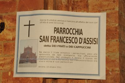 Il finto manifesto funebre fatto pubblicare dai parrocchiani nel 2011 per denunciare la chiusura del convento