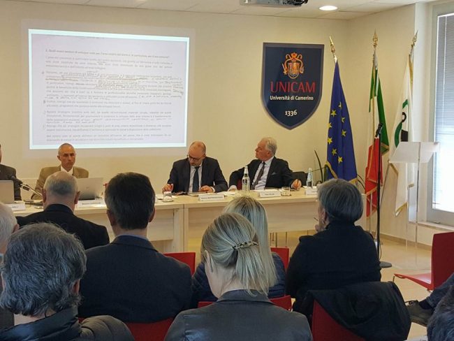 Un altro progetto ha sviluppato idee per la mobilità sostenibile e le connessioni telematiche, denominato «Borghi in rete»; l’analisi della fruizione e valorizzazione di musei e beni culturali, sia organizzati in raccolte museali che in borghi sparsi, per gli aspetti della gestione, dell’organizzazione e del funzionamento, ha riguardato il terzo e quarto progetto. «Innovare per conservare» riguarda la ricostruzione con progetti pilota, di beni architettonici, nell’ambito della situazione di costruzione all’epoca di origine e con il contesto del paesaggio in cui si trovano. Immancabile la «Creatività e made in Italy», per agevolare lo sviluppo economico tramite la ricchezza prodotta dal sistema cultura. La gestione sostenibile del bosco, anche per creare risorse energetiche rinnovabili è stato il tema del progetto «Capitale verde dell’Appennino», a cui si aggiunge per affinità tematica «Patrimonio vegetale», per un’agricoltura innovativa e la valorizzazione dei prodotti vegetali, per dare alle aziende possibilità di maggiore sviluppo economico integrato, nel segno dell’ecosostenibilità. Le greggi ovine e bovine, la filiera zootecnica, tra diversificazione produttiva e valorizzazione delle tipicità locali, è il filo conduttore del progetto «Dai pascoli alla tavola». Gli ultimi due progetti riguardano la ricostruzione post terremoto, il primo «Ricostruire meglio» mette a punto una serie di interventi, sia di ricerca che di formazione, per perseguire l’innovazione sociale e lo sviluppo economico, l’ultimo riguarda il monitoraggio del processo di ricostruzione e la costruzione di data base accessibili con dati aperti sul terremoto ed il territorio di riferimento. Sono intervenuti numerosi sindaci, amministratori regionali e locali, docenti universitari, la mattinata si è aperta con i saluti del sindaco di Camerino Gianluca Pasqui e del rettore Unicam Claudio Pettinari.