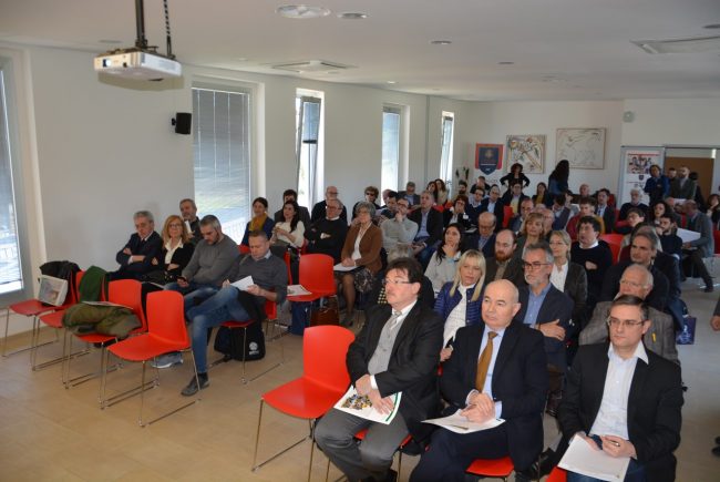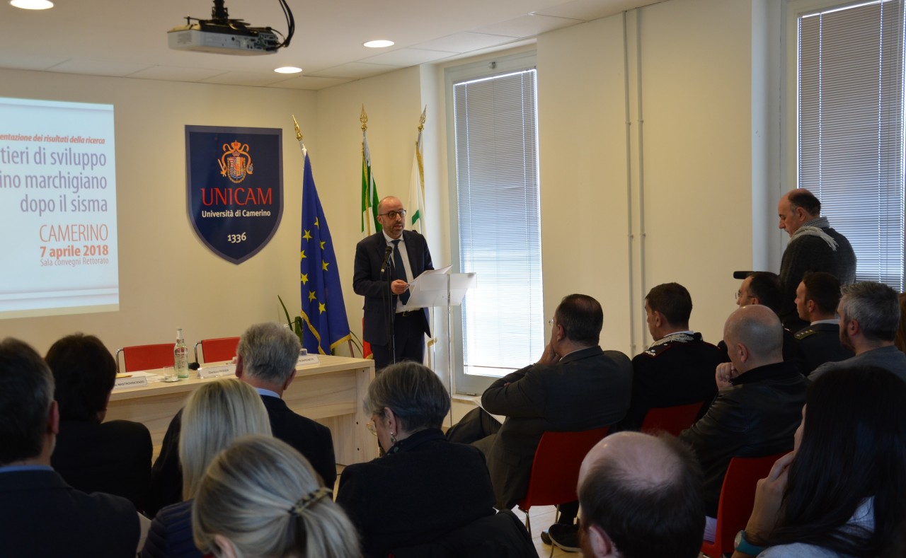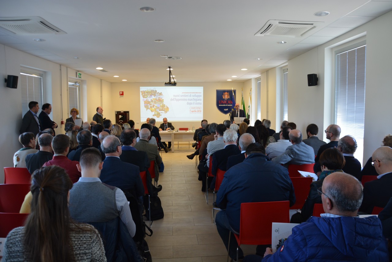 Un altro progetto ha sviluppato idee per la mobilità sostenibile e le connessioni telematiche, denominato «Borghi in rete»; l’analisi della fruizione e valorizzazione di musei e beni culturali, sia organizzati in raccolte museali che in borghi sparsi, per gli aspetti della gestione, dell’organizzazione e del funzionamento, ha riguardato il terzo e quarto progetto. «Innovare per conservare» riguarda la ricostruzione con progetti pilota, di beni architettonici, nell’ambito della situazione di costruzione all’epoca di origine e con il contesto del paesaggio in cui si trovano. Immancabile la «Creatività e made in Italy», per agevolare lo sviluppo economico tramite la ricchezza prodotta dal sistema cultura. La gestione sostenibile del bosco, anche per creare risorse energetiche rinnovabili è stato il tema del progetto «Capitale verde dell’Appennino», a cui si aggiunge per affinità tematica «Patrimonio vegetale», per un’agricoltura innovativa e la valorizzazione dei prodotti vegetali, per dare alle aziende possibilità di maggiore sviluppo economico integrato, nel segno dell’ecosostenibilità. Le greggi ovine e bovine, la filiera zootecnica, tra diversificazione produttiva e valorizzazione delle tipicità locali, è il filo conduttore del progetto «Dai pascoli alla tavola». Gli ultimi due progetti riguardano la ricostruzione post terremoto, il primo «Ricostruire meglio» mette a punto una serie di interventi, sia di ricerca che di formazione, per perseguire l’innovazione sociale e lo sviluppo economico, l’ultimo riguarda il monitoraggio del processo di ricostruzione e la costruzione di data base accessibili con dati aperti sul terremoto ed il territorio di riferimento. Sono intervenuti numerosi sindaci, amministratori regionali e locali, docenti universitari, la mattinata si è aperta con i saluti del sindaco di Camerino Gianluca Pasqui e del rettore Unicam Claudio Pettinari.