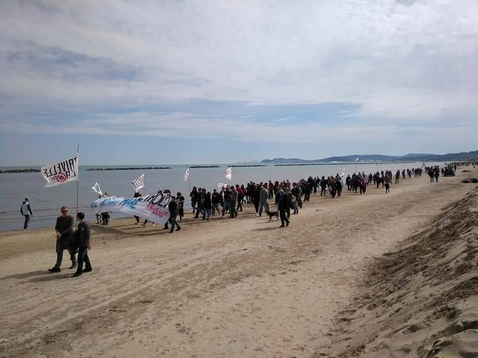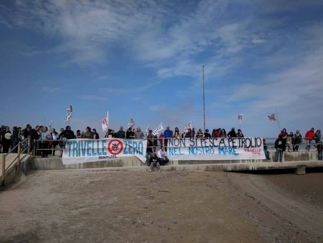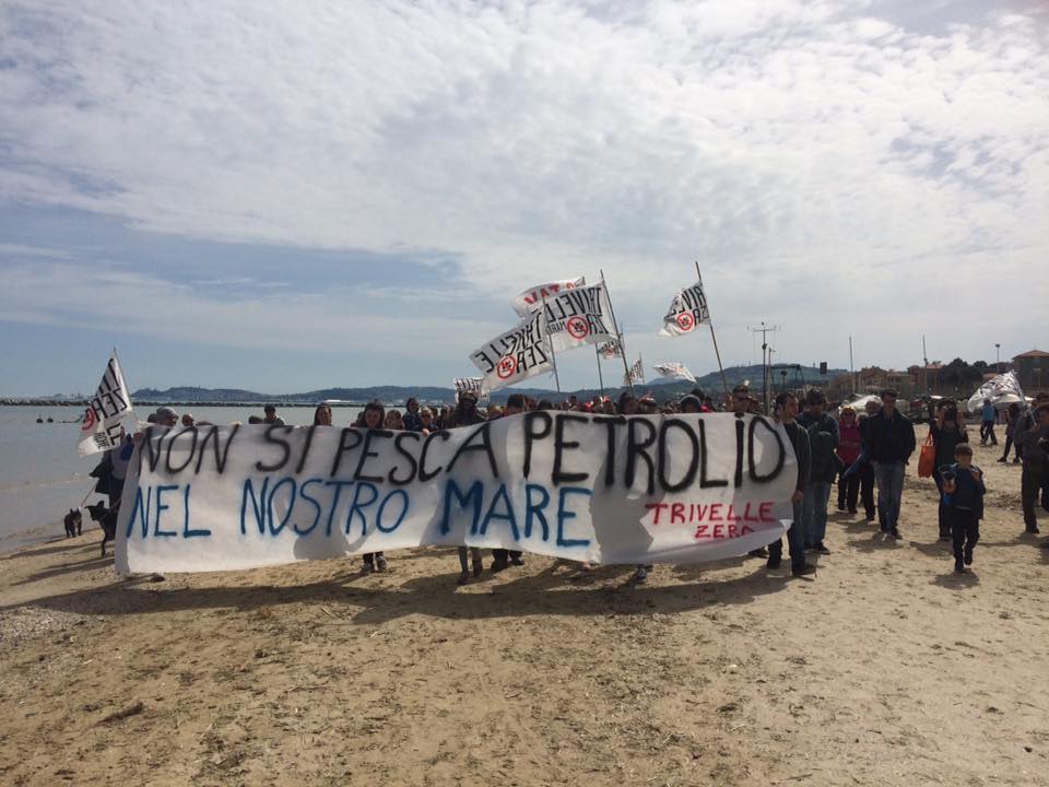 “Non si pesca petrolio nel nostro mare”. Uniti con questo slogan, un centinaio di attivisti del movimento “TrivelleZero delle Marche” hanno sfilato questa mattina tra Ancona e Falconara, lungo la spiaggia di Palombina. Un flash mob andato in scena in contemporanea in otto città tra Emilia, Marche, Abruzzo, Molise e Puglia, in seguito alla sentenza del Consiglio di Stato che ha respinto i ricorsi delle Regioni contro le ricerche di petrolio nell’Adriatico. La decisione della magistratura riapre nelle Marche il progetto di installazione della piattaforma Eni “Bianca& Luisella” nel tratto di mare a confine tra Marche ed Emilia Romagna, al largo di Pesaro, ma gli ambientalisti sono preoccupati anche per il possibile impiego della tecnica dell’air gun per la ricerca di idrocarburi, consentito in undici siti da parte del ministero dell’Ambiente, compresa la costa adriatica delle Marche. Il progetto più vasto è quello della Spectrum Geo Ltd, approvato con Decreto Ministeriale 103 del 3 giugno 2015, per due aree, una da Rimini al nord del Gargano e l’altra a sud del Gargano fino al Canale di Otranto, per un totale di circa 3 milioni di ettari.
