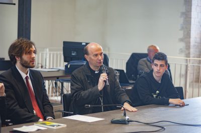 Il consigliere Andrea Giombi, il vescovo Russo e il sindaco junior Francesco Beltrami