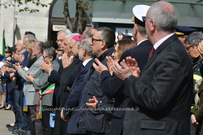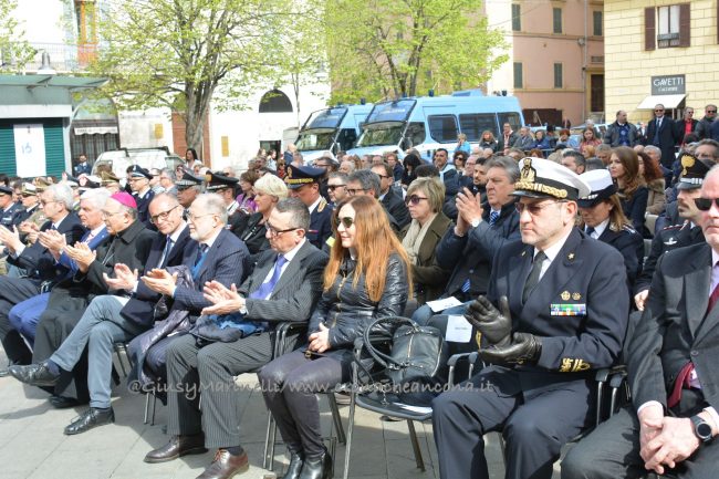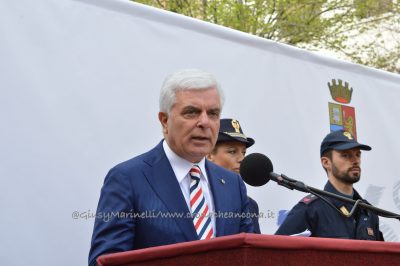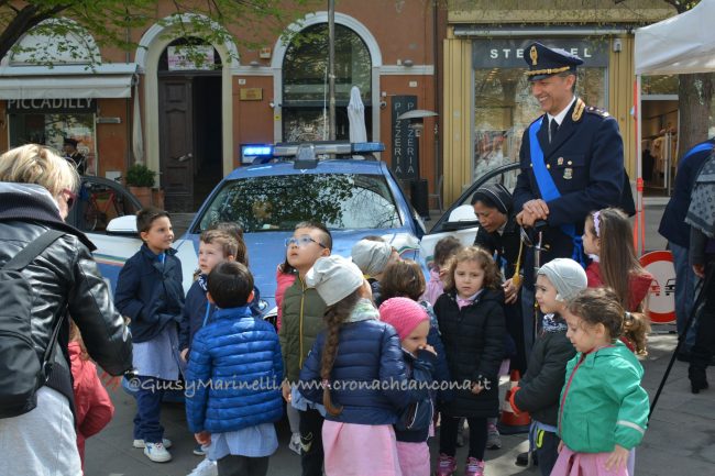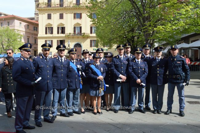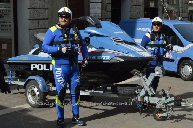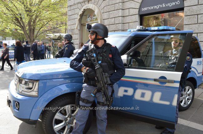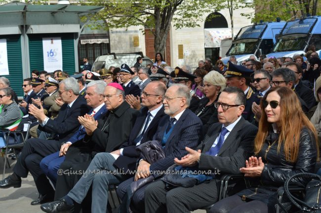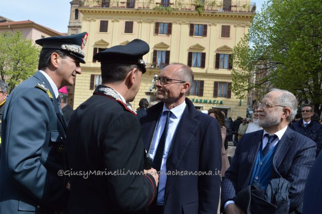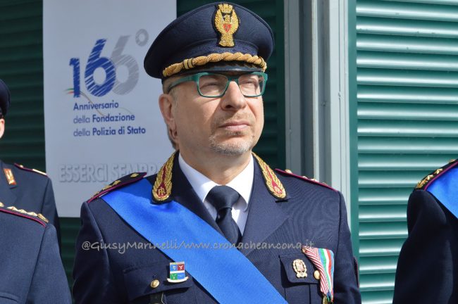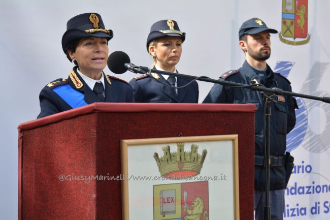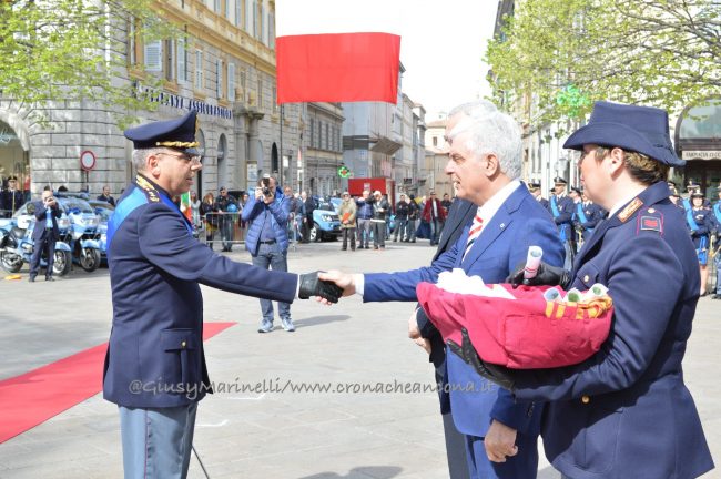 Esserci sempre, un motto che la polizia ha voluto portare in piazza questa mattina per rappresentare la presenza costante degli uomini e delle donne delle forze dell’ordine a tutela e servizio dei cittadini. Scelta simbolica, dunque, quella di celebrare in piazza Roma ad Ancona i 166 anni dalla fondazione del corpo della polizia di Stato. “La scelta di trovarci anche quest’anno qui nel cuore di Ancona, vuole sottolineare l’impegno sentito e determinato della polizia di Stato per questa città, per la sua provincia e per la sua gente, così viva ed attiva e così vicina oggi, più di sempre, in questa piazza. E lo stare qui, tra voi, è uno dei modi in cui si declina il tema che sintetizza il senso della celebrazione odierna: esserci sempre” ha spiegato il questore Oreste Capocasa nel suo discorso, che ha aperto la cerimonia ricordando gli agenti caduti in servizio e le loro famiglie. Su Ancona, il questore rileva che “pur in costanza di momenti delicati sul fronte nazionale e su quello internazionale, l’ordine pubblico non ha subito gravi turbative”.