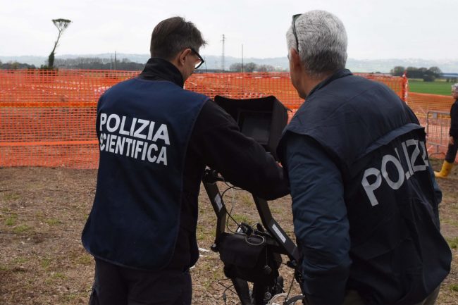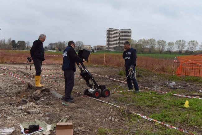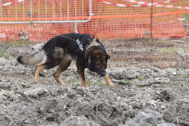 A due settimane dal ritrovamento del femore umano rinvenuto nel pozzo dell’orrore di Porto Recanati si sono chiuse oggi pomeriggio le operazioni di scavo e accertamento sul campo. Il cane molecolare Dogan ha fiutato un oggetto che è stato prelevato e sarà analizzato in laboratorio. Non si sa ancora infatti se si tratta di un ulteriore frammento di osso: era attaccato ad un sasso e solidificato nel fango. Il cane molecolare arrivato da Malpensa lo ha fiutato all’ultimo giro di ricognizione, posizionandosi in basso e fermandosi, dando così il segnale al conduttore di cercare lì. E la polizia e la Scientifica ha rinvenuto questo frammento la cui natura non è ancora chiara e che dovrà essere analizzata, un pezzo di circa 4 o 5 centimetri. Le operazioni sono iniziate questa mattina quando gli uomini della Scientifica di Roma hanno perlustrato il campo col georadar. Le condizioni del terreno però non consentivano di andare molto in profondità. Lo strumento ad un certo punto ha captato un segnale, un grosso oggetto metallico. La polizia ha ispezionato per verificare di cosa potesse trattarsi, ma il manufatto non è risultato attinente alle ricerche. Per meglio sondare il terreno poi la pala meccanica ha mosso la terra sottoposta a sequestro così da non lasciare nulla di intentato e nel pomeriggio Dogan ha girato per lungo e largo di nuovo tutto il terreno. Attorno alle 16,30 il ritrovamento che è stato prelevato e imbustato per essere consegnato ai Ris per le analisi di laboratorio. Al termine delle operazioni tutti i solchi prodotti per i sondaggi del terreno sono stati coperti ed è probabile che a breve l’area verrà dissequestrata a meno che dopo i primi rilievi di laboratorio non emergano necessità differenti ed un ulteriore approfondimento sul campo. Ora arriva la parte più complicata: cercare di risolvere il mistero ed attribuire un nome e un volto ai resti dell’Hotel House.