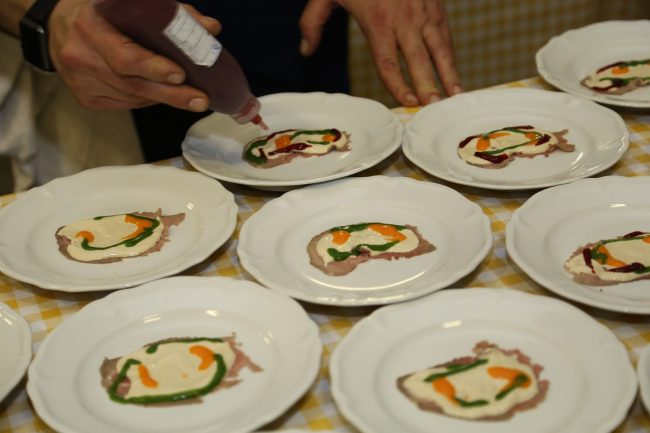 Errico Recanati, chef del ristorante Andreina all’opera per la cena celebrativa dei 50 anni della Doc Verdicchio dei Castelli di Jesi