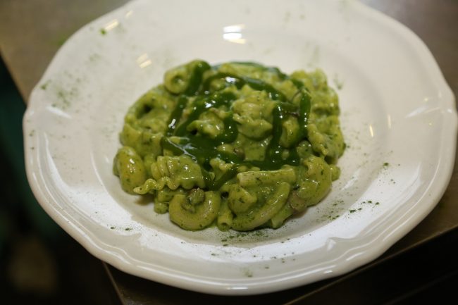 Un “Risotto, colombaccio e bietolina” e “Mischiato di patate di Montemonaco e lumache” riportano il cuore agli anni ’60, quando i piatti con la selvaggina davano un tono a qualsiasi pranzo di celebrazione o di convivialità, e quando ancora si andava per lumache. “Vigneto del Balluccio” 2016 (Tenuta dell’Ugolino) e “Misco” 2015 (Tenuta di Tavignano) sono i due calici di Verdicchio dei Castelli di Jesi Doc Classico Superiore che hanno brindato al gusto di questi ricordi.