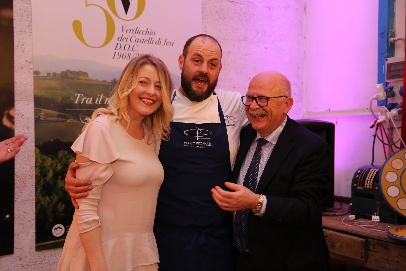 Un viaggio nella storia della cucina delle Marche, a tempo di Verdicchio. È la sintesi della cena di gala per il 50° compleanno del Verdicchio dei Castelli di Jesi, che si è tenuta domenica sera in occasione del Vinitaly nel tempio del vintage di Maison Vicentini. A seguire l’itinerario enogastronomico sotto la stella di Errico Recanati (Ristorante Andreina) 70 firme e volti del giornalismo enogastronomico italiano e internazionale.