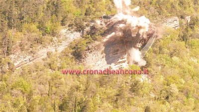 Le operazioni di verifica con i droni dei vigili del fuoco erano iniziate ieri con il monitoraggio della parete di roccia e dell’area limitrofa con il personale S.A.P.R. (Sistemi Aeromobili a Pilotaggio Remoto) che sono servite nella pianificazione e sicurezza dell’intervento. Le operazioni sono state coordinate dalla Prefettura di Ancona e ha visto partecipe la Regione Marche, Gruppo Ferrovie dello Stato e tutte le forze dell’ordine e di Protezione Civile. Per la demolizione della roccia sono state usate delle cariche esplosive a cura di una ditta specializzata a cui sono seguite verifiche su tutta l’area sia da terra che dai droni per verificare lo stato dei luoghi e delle infrastrutture presenti a fine operazioni. La linea ferroviaria sottostante della tratta Ancona – Roma è stata chiusa per tutta la durata dell’intervento.